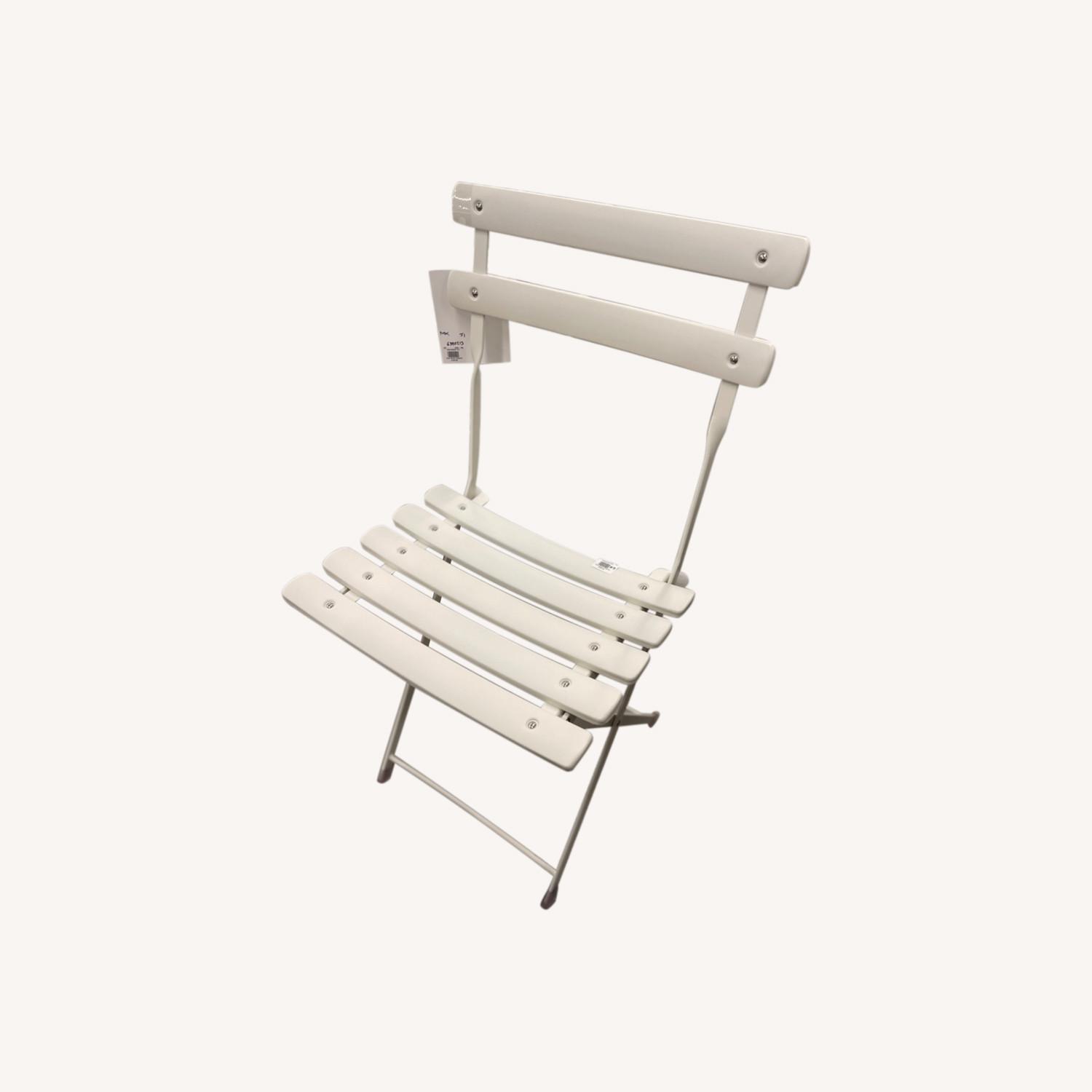 Seller's Notes:Floor models sold as a set of 2! The white is no longer available through Pottery Barns website so it’s great to be able to purchase it here! Made of steel, iron and carbon alloy. Treated to withstand the elements with the unique EMU-coat anti-corrosion process carbon content is below 2%. Available in finishes; Matte White, Dark Blue, Dark Green, and Antique Iron. Foldable. Imported. For daily care, wipe with a soft, dry cloth. Wipe spills immediately with a clean, dry cloth. Avoid the use of harsh cleaners and abrasives. Store indoors during long periods of inclement weather. Make sure furniture is completely dry before storage. Cover furniture with outdoor covers (sold separately) when left outside during inclement weather or when not in use. Use a proper outdoor cover that allows for adequate ventilation without trapping moisture.