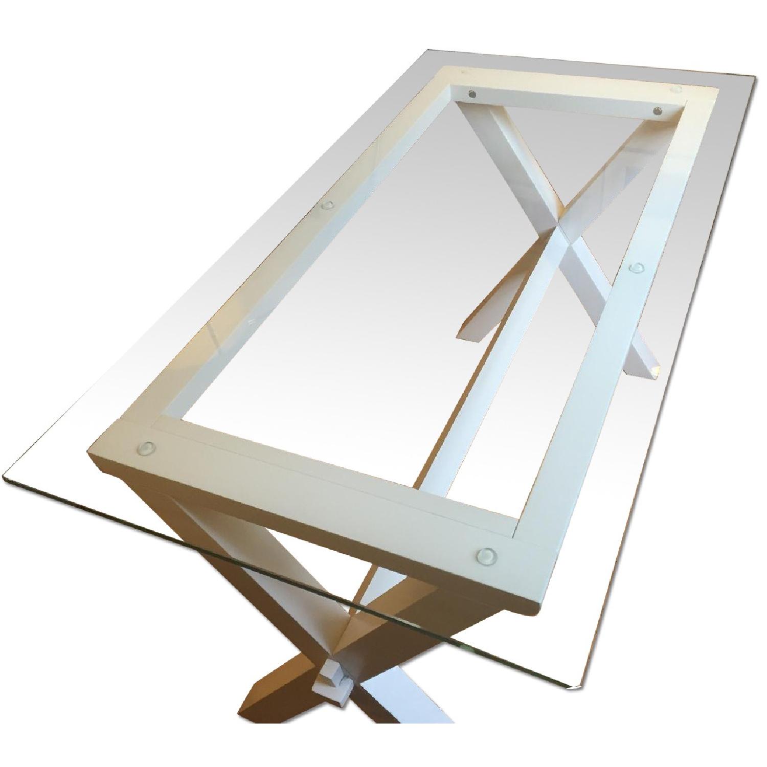 Pottery Barn Glass Top White Cross-Legged Desk