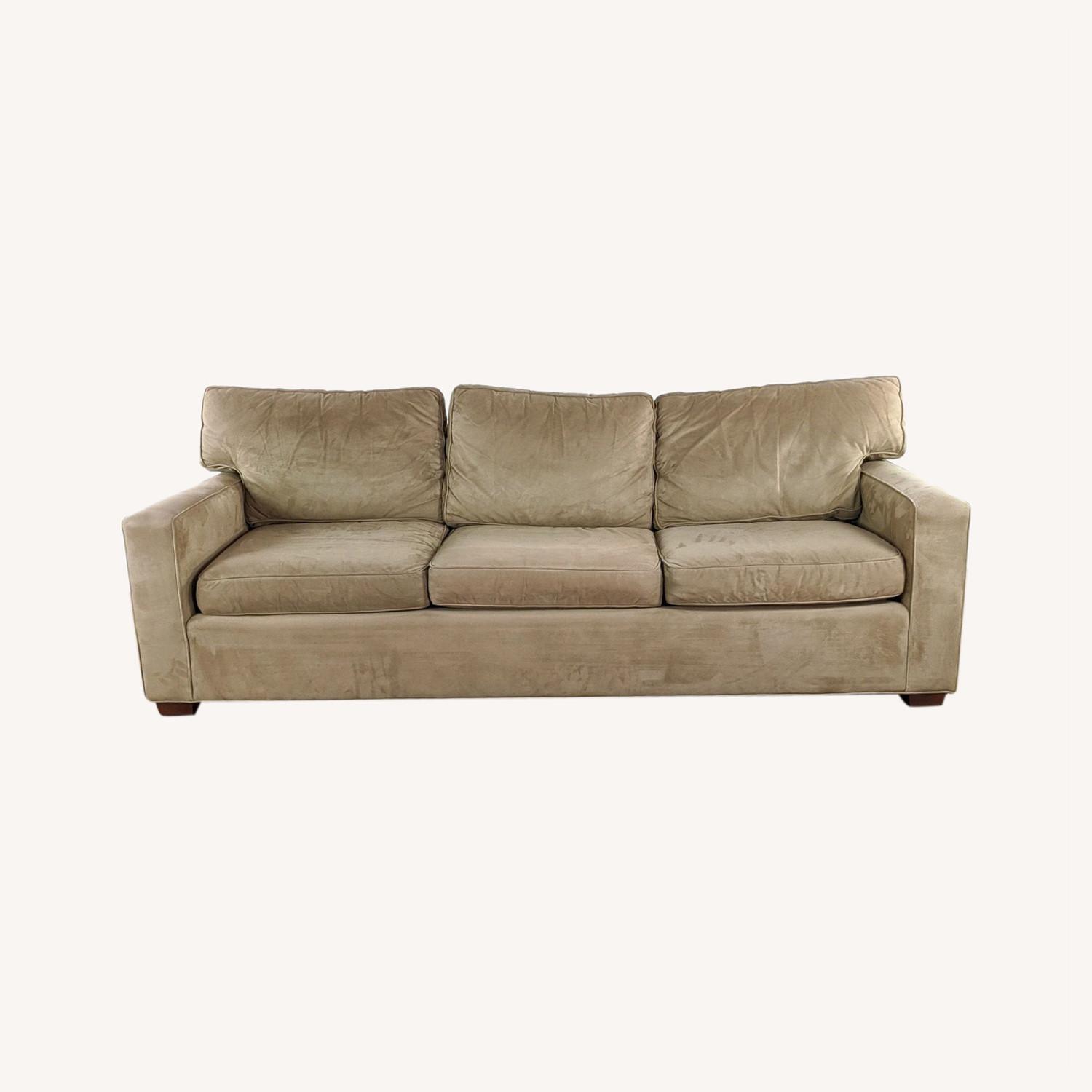 Seller's Notes:Contemporary, Micro-Suede Fabric Upholstered Sofa With Removable Seat And Back Pillows. Brand: Pottery Barn. Dimensions: 92x40x29.