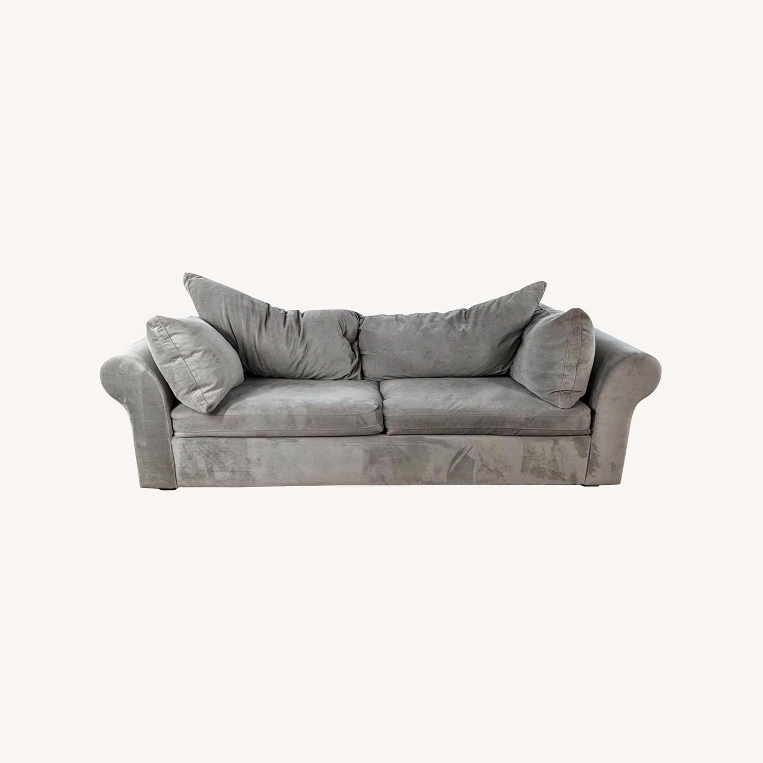 Seller's Notes:Contemporary "Charleston" Rolled Arm Velvet Eight Foot Sofa. Brand: Pottery Barn. Model: . Retail price: 1899.00. #SKU: 1051935