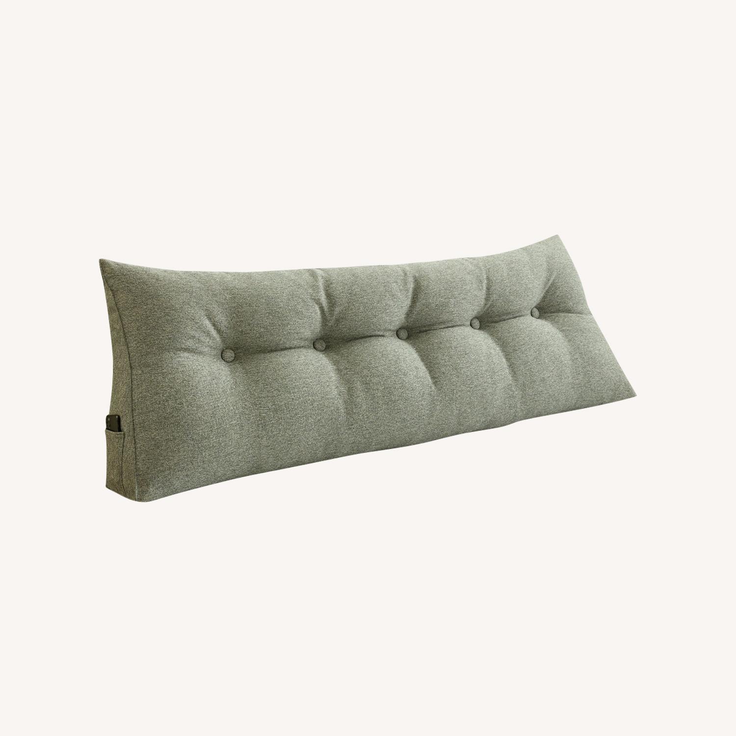 Seller's Notes:Pillow is filled with hypoallergenic polyester fibers which contour to fit your body. Cover is made from durable upholstery with double zipper for easy removal. Firm support; ergonomic shape brings unparalleled comfort and contours to the shape of your back, shoulders, neck and legs. Features tufted buttons and side pocket to store your remote or phone. Can be used as a headboard, without installation required, or extra support on your sofa or on the floor. Great way to fill gaps between headboard and mattress. Lightweight and easy to carry.