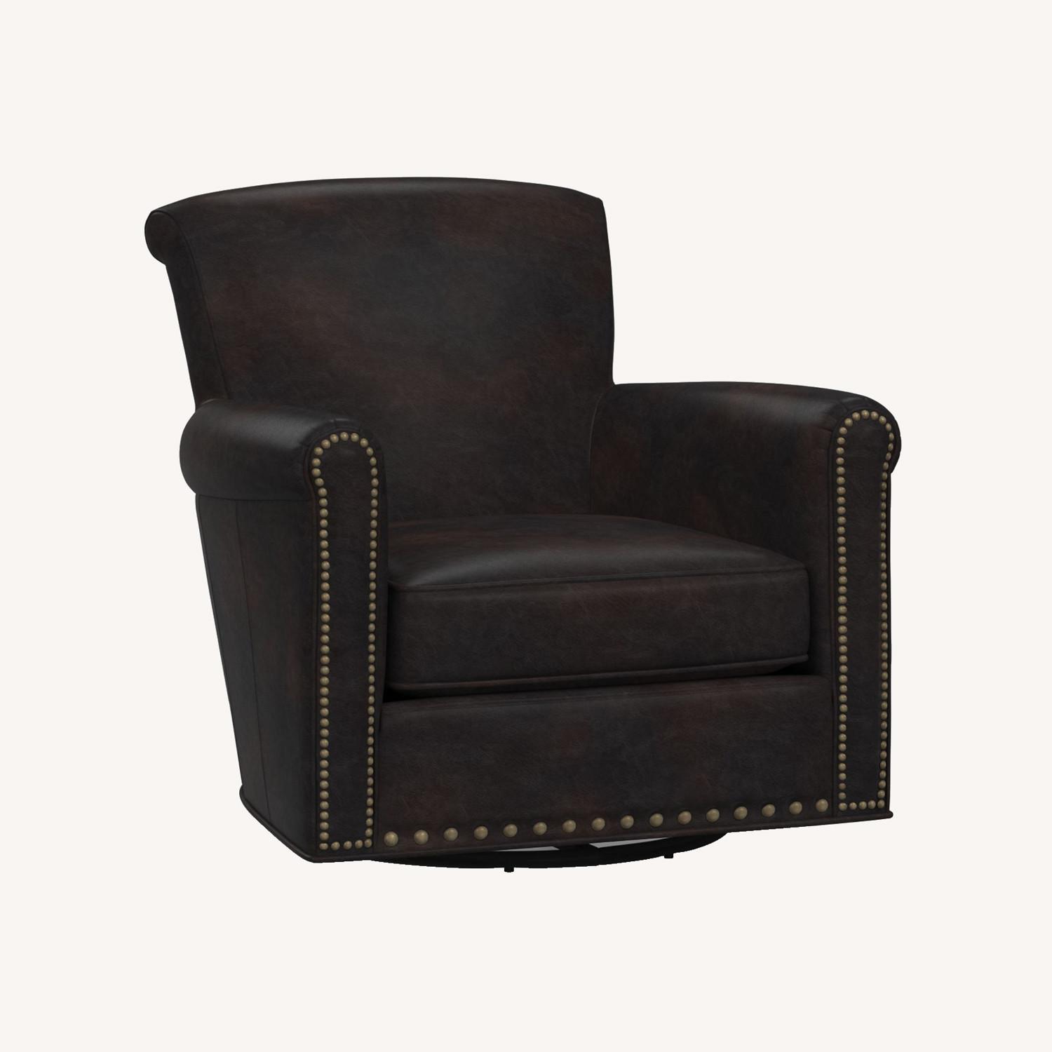 Pottery Barn Irving Roll Leather Swivel Armchair