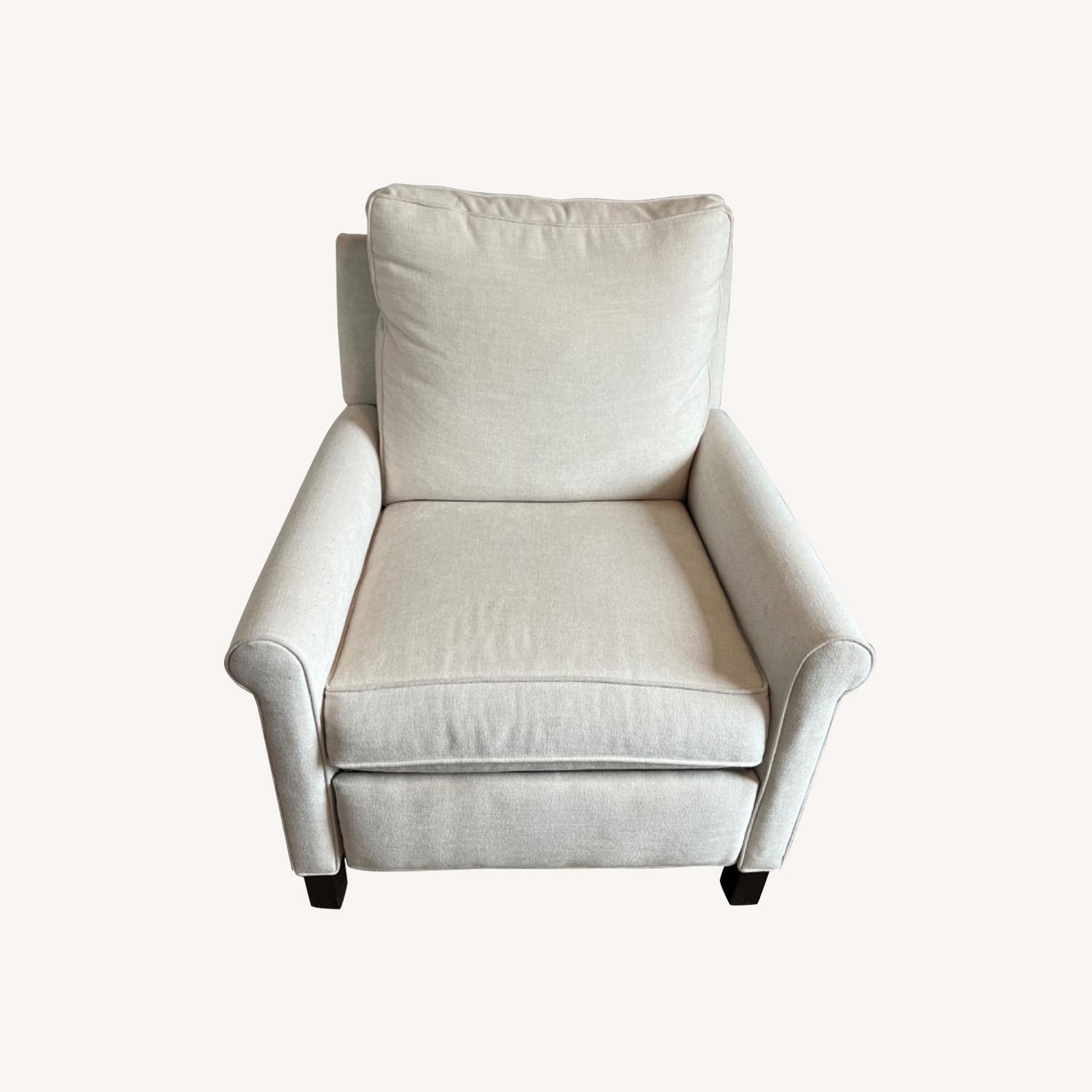 Seller's Notes:Pottery Barn link to original listing: https://www.potterybarn.com/products/tyler-roll-arm-upholstered-recliner/ Color: Performance Heathered Tweed Ivory. Dimensions: Overall (upright): 30” x 35”d x 38”h Overall (reclined): 30” x 62.5”d x 38”h Weight: 70 lbs Purchased in 2019, this recliner is in excellent condition. Extremely minor pilling on one arm (seen in pic). We moved it in our Volvo, so a big moving truck is not required :) We live in a smoke-free, pet-free home in Williamsburg. Elevator building. Selling because it doesn’t work in our new living room, but it’s super comfy!