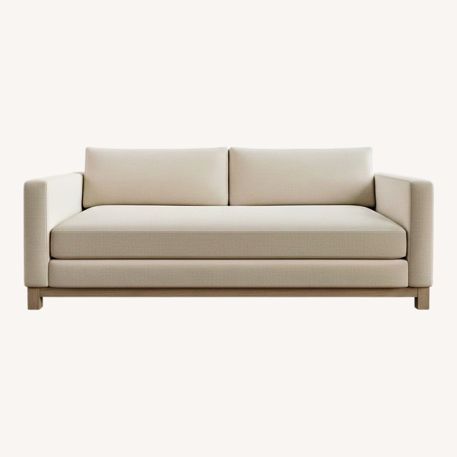 Seller's Notes:Beautiful sofa that we have owned for less than a year. It is the from the Pottery Barn - Jake Seadrift collection with wood base. Elegant, with clean lines yet cozy feel, medium firmness. The performance fabric (twill) makes it easy to clean, especially if stains are removed promptly, and it is very pet-friendly (we have a small dog). There are some faint stains on the cushion - mainly because I waited too long to remove them. Official color is "sand" - it is more like a warm white / ivory. We need to downsize a bit and didn't plan well when purchasing this item last August!
