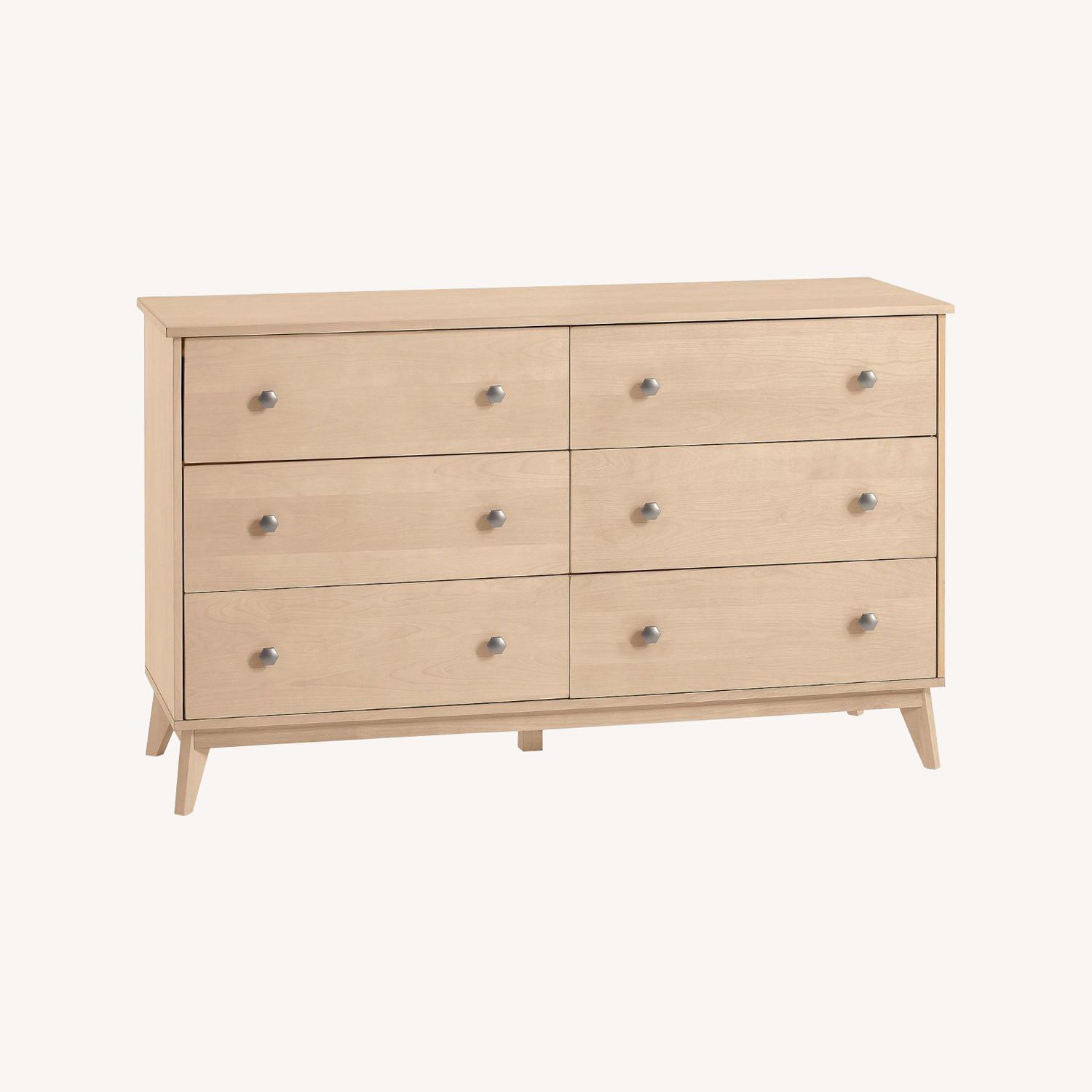 Seller's Notes:Featuring tapered legs, classic finishes and understated details, the Keaton Wide Dresser is a timeless addition to your room. The six spacious drawers offer ample storage for clothes, bedding and gear, and quality craftsmanship ensures lasting strength and style. GREENGUARD Gold Certified to contribute to healthier indoor air, keeping you and your family safer. Crafted of premium woods like poplar and MDF. Each finish is applied by hand in a multi-step process to ensure a thorough and durable finish. Designed with 6 English dovetailed drawers that open smoothly on wooden glides and bottom mounted, half-moon plastic drawer stops for safety. Rigorously tested to meet or exceed all required and voluntary safety standards. Anti-tip kit included: comes with safety-tested mounting hardware, instructions and a nylon strap. To prevent injuries from furniture tip-over, this item should be securely fixed to the wall. how to install anti-tip kits.