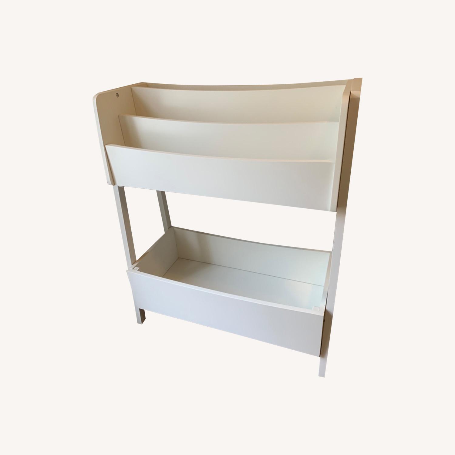 Seller's Notes:Three racks for displaying your kids’ favorite books and ample toy storage below. Expertly crafted from solid rubber wood and MDF (medium density fiberboard). Frame is made with frame-and-panel joinery which ensures added strength. Finish is applied using child-safe, water-based paint, providing durability, richness and depth of color to each piece of furniture.