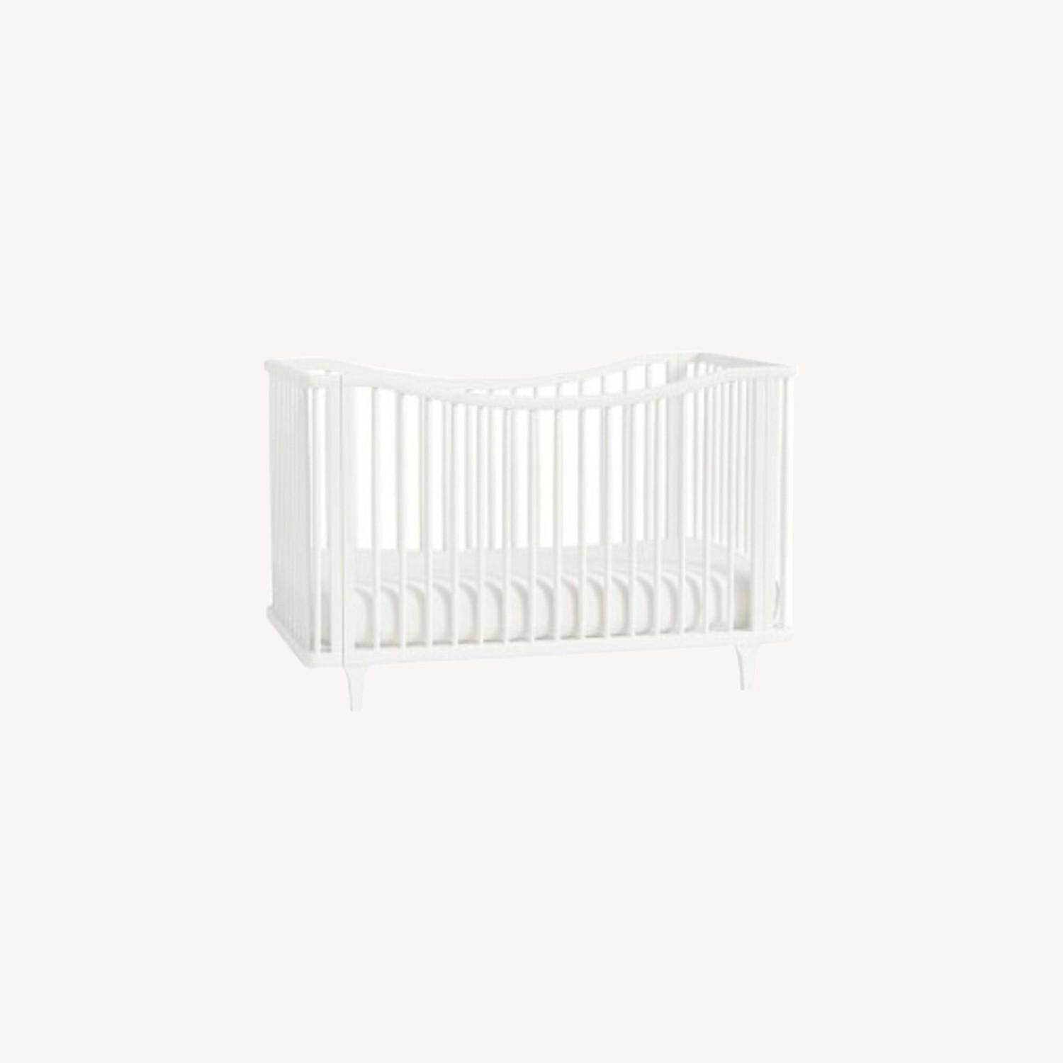 Seller's Notes:Dawson Scoop Crib is a modern take on a classic style. Designed with curved railings to allow easy in-and-out accessibility, this versatile piece easily adapts from crib to cozy toddler bed. Most importantly, it was constructed from made-to-last materials to ensure safety, stability and longevity Overall: 55" wide x 30.5" deep x 35.5" high Unopened / never used convertible toddler bed parts included. Mattress platform offers three height options to accommodate your growing baby. Platform can be adjusted to the following heights: 6.25", 10", 13.75" Mattress not included