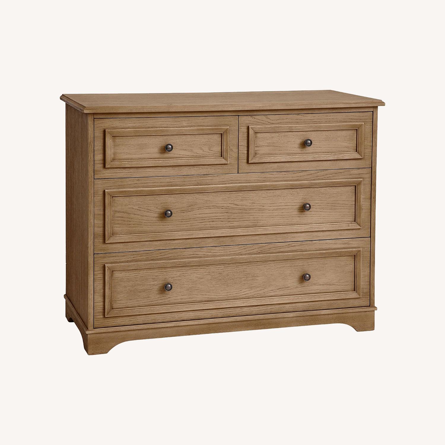 Seller's Notes:Ample storage makes caring for your baby a little easier. Keep socks, booties, bath wraps and diapering supplies in the top drawers, and store baby clothes and swaddling blankets on the roomy bottom drawers. HOW IT IS CONSTRUCTED Expertly crafted from solid Sap Gum wood and MDF (medium density fibreboard), an engineered wood that lends exceptional strength and ensures that the dresser will endure over time. Drawers feature English dovetail joinery. Our exclusive finishes are applied by hand for exceptional richness, durability and depth of color. Made in a Fair Trade Certified™ factory, supporting fair and safe labor practices and empowering workers to invest in their communities. GREENGUARD Gold Certified to contribute to healthier indoor air, keeping you and your family safer. Made in a Fair Trade Certified™ factory, supporting fair and safe labor practices and empowering workers to invest in their communities. DETAILS THAT MATTER Dresser is equipped with two small and two large drawers. KEY PRODUCT POINTS All Pottery Barn Kids juvenile products are tested at 3rd party CPSC accredited labs to meet or exceed all industry voluntarily and regulatory safety requirements. Imported. Anti-tip kit included: comes with safety-tested mounting hardware, instructions and a nylon strap. To prevent injuries from furniture tip-over, this item should be securely fixed to the wall.