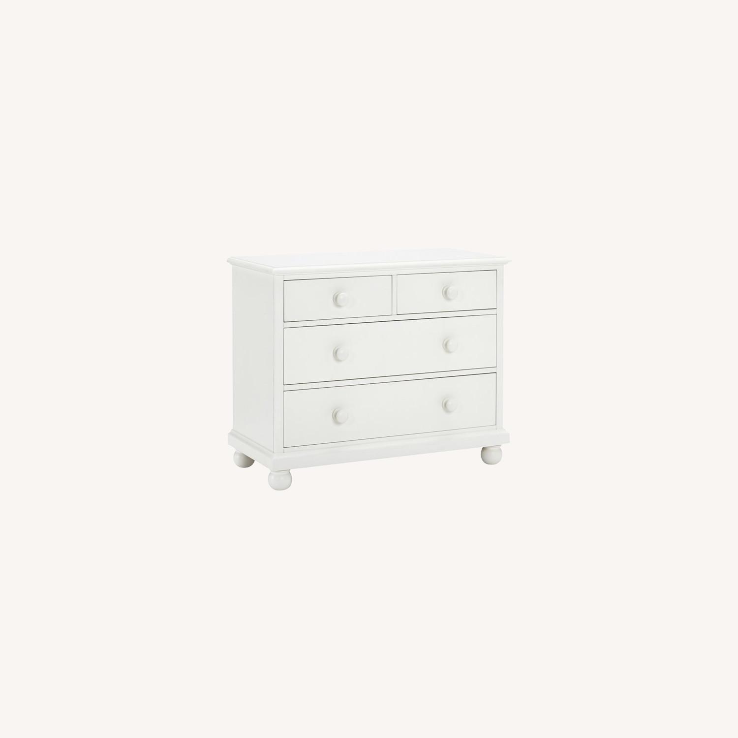 Seller's Notes:A couple of dings, as you can see, but otherwise, really good condition! Smoke-free, pet-free, Covid-free home. Great for a small NYC apartment. *Anti-tipping kit included* Overall: 37.5" wide x 18" deep x 30.5" high Small Drawer Interior (2): 14" wide x 13" deep x 4" high Large Drawer Interior (2): 32" wide x 13" deep x 6" high Legs: 3.5" diameter, 3" high Weight: 82.5 pounds Clean lines and classic beadboard make the Catalina Collection as versatile as it is beautiful. From the bedroom to the study furniture, they're expertly crafted pieces that will never go out of style. Favorite details include lathe-turned legs, solid wood bun feet and oversized wooden knobs made for little hands. HOW IT IS CONSTRUCTED Built from solid poplar wood, birch veneers and MDF (medium density fiberboard). Masterfully crafted with mortise-and-tenon construction and tongue-and-groove joinery for structural integrity. Drawers feature English dovetail joinery and waxed wooden glides, which ensure smooth motion. Sturdy half-moon safety stops keep drawers securely in place. The use of veneers results in high-quality furniture with flawless surfaces and consistent color tones. All wood is kiln-dried, a process that ensures that the furniture will never split, warp, crack or mildew. Finish is applied in multi-step process which provides durability, richness and depth of color to each piece. GREENGUARD Gold Certified. Meets or exceeds stringent chemical emissions standards. DETAILS THAT MATTER Dresser is equipped with 4 roomy drawers; two smaller and two larger drawers. Detailed with solid wood bun feet. KEY PRODUCT POINTS All Pottery Barn Kids juvenile products are tested at 3rd party CPSC accredited labs to meet or exceed all industry voluntarily and regulatory safety requirements. Imported.