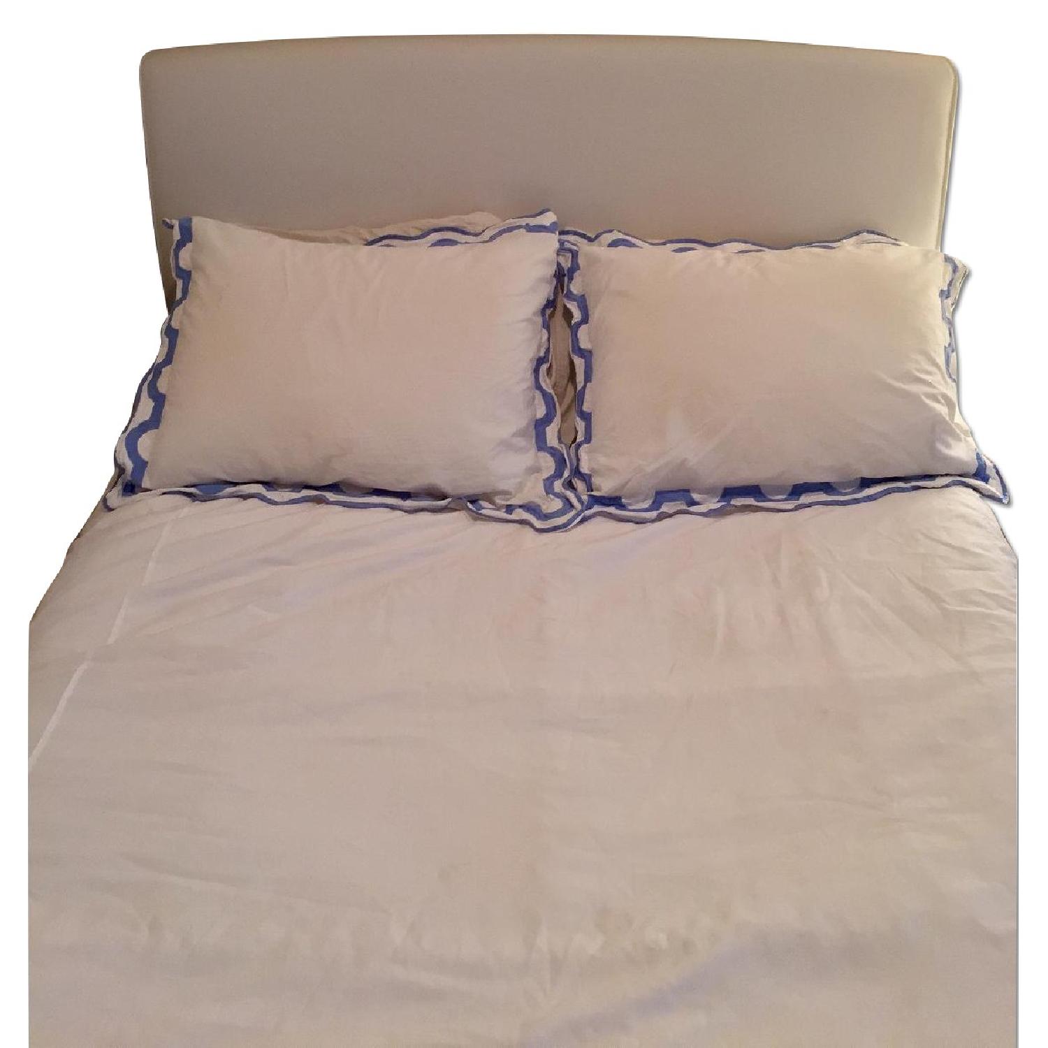 Seller's Notes:// Pottery Barn Lewis Slipcovered Headboard // Slipcover fabric in 'White Twill' // Dimensions: 55.5" wide x 5" deep x 54" high // More information: http://www.potterybarn.com/products/lewis-slipcovered-headboard/ The 'Lewis' is beautiful streamlined shape that makes the bedroom look more elegant. The Full Size is excellent for New York bedrooms of all shapes and sizes. The white twill slipcover is wonderful because it matches all sheets and color schemes. It is removable, which makes cleaning very easy. It can be washed in a machine in cold water on gentle cycle.