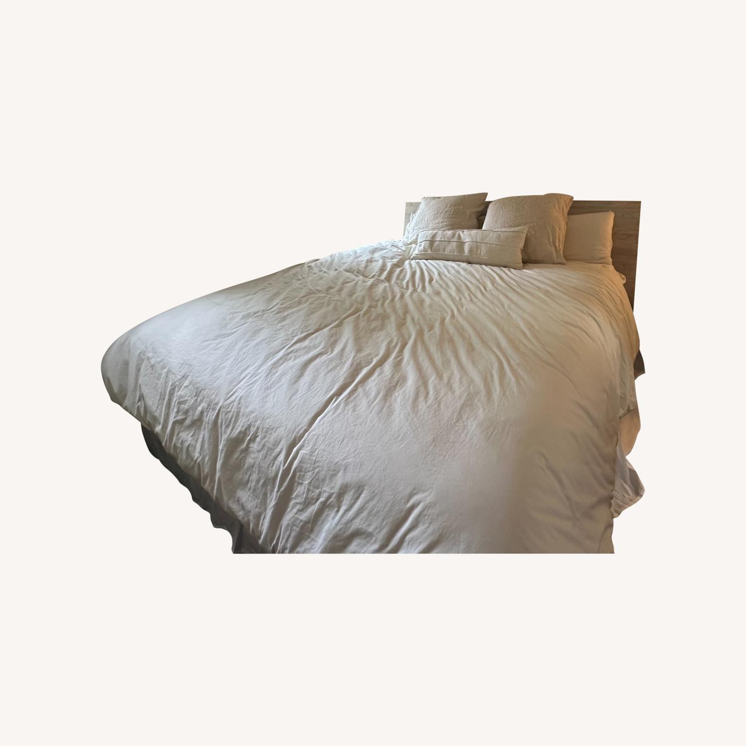 Seller's Notes:This light grey Pottery Barn King Platform bed frame is minimalistic, sturdy, neutral, and in great condition. This bed frame is one year old without any damage. I wish I could keep this bed because I love it so much, but I'm moving cross country!