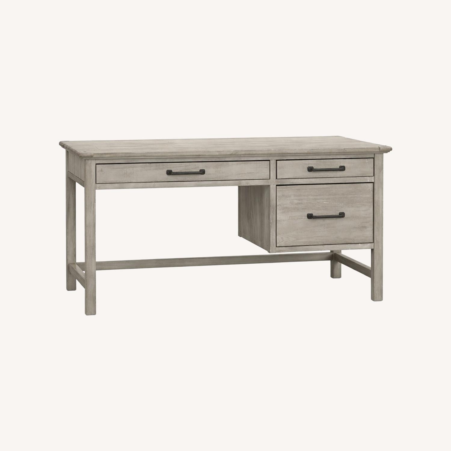 Seller's Notes:This desk has rarely been used and is in great shape! It is a light grey wash from Pottery Barn- I cannot find the link the exact model but is similar to the Livingston collection. Great piece for an apartment to work from home.