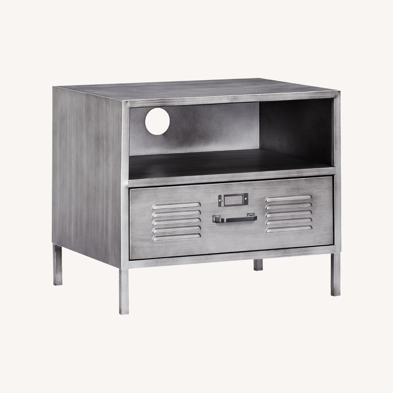 Seller's Notes:Equal parts chic and functional, our Locker Bedside Table is expertly crafted of galvanized metal to stand tough year after year. Featuring a shelf and drawer, it’s complete with a cutout on the back so you can easily hide all your electronic cords. GREENGUARD Gold Certified to contribute to healthier indoor air, keeping you and your family safer. Crafted from iron with a hand-applied silver painted finish. Features 1 shelf and 1 deep drawer with side mounted glides and drawer safety stops.
