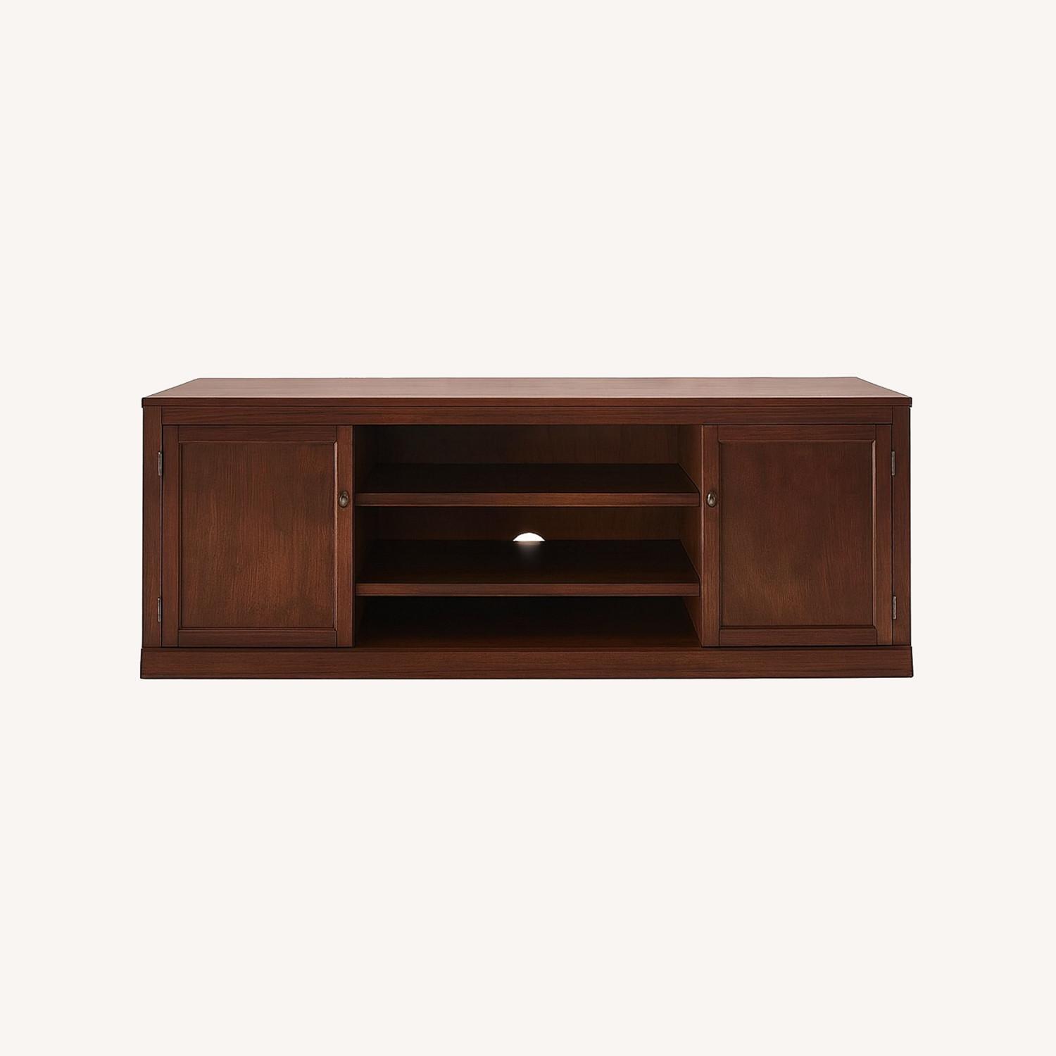 Seller's Notes:Pottery Barn Logan media stand with storage and cable management slots. Excellent condition with minor scratches that can be covered with wood marker.