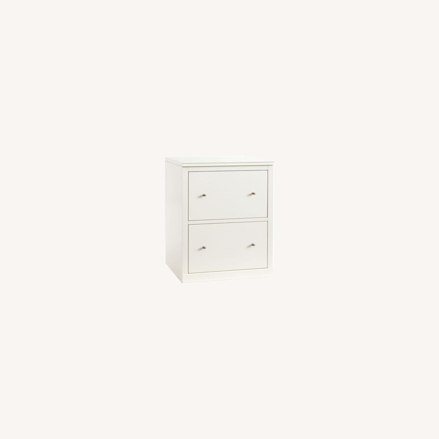 Seller's Notes:Logan File Cabinet Base with 2-Drawers, Alabaster, 24" Wide. Expertly crafted from solid kiln-dried hardwood with birch veneers, and reinforced with corner blocking for structural integrity. Kiln-dried wood helps prevent warping, splitting, cracking and developing mildew. The use of veneers results in high-quality furniture that has flawless surfaces and consistent color tones that will not be subject to cracking. Features a semi-gloss white finish on all sides. Sealed with protective lacquer for moisture resistance. File cabinet features side mounted metal drawer glides. Holds both legal and letter sized files. Contract Grade: Thoughtfully designed and expertly engineered to meet rigorous testing standards and best practices from select ANSI/BIFMA testing protocols.