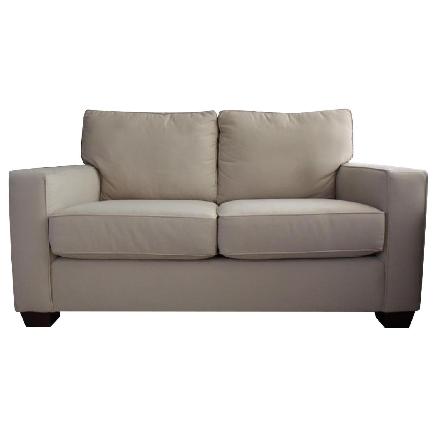 Seller's Notes:PB Comfort Square Arm Upholstered Sofa - Loveseat - Excellent condition - Clean - Non-smoker, no pets. - Used for only 21 months. - Great for small space / condos. - Fabric: Performance Canvas - Performance Canvas Grade B: Features superior hand-feel and drape. - Color: Driftwood - Stain resistant. - Love Seat: 62" w x 39" d x 37" h Potterybarn: Sink into this sofa just once, and you'll know how it got its name. Designed with extra-deep seats and three layers of thick padding on the arms and back, it's designed for unparalleled comfort. http://www.potterybarn.com/products/pb-comfort-square-upholstered-sofa-collection/?pkey=csofas%7Cupholstered-slipcovered-sofas%7C&&csofas|upholstered-slipcovered-sofas|