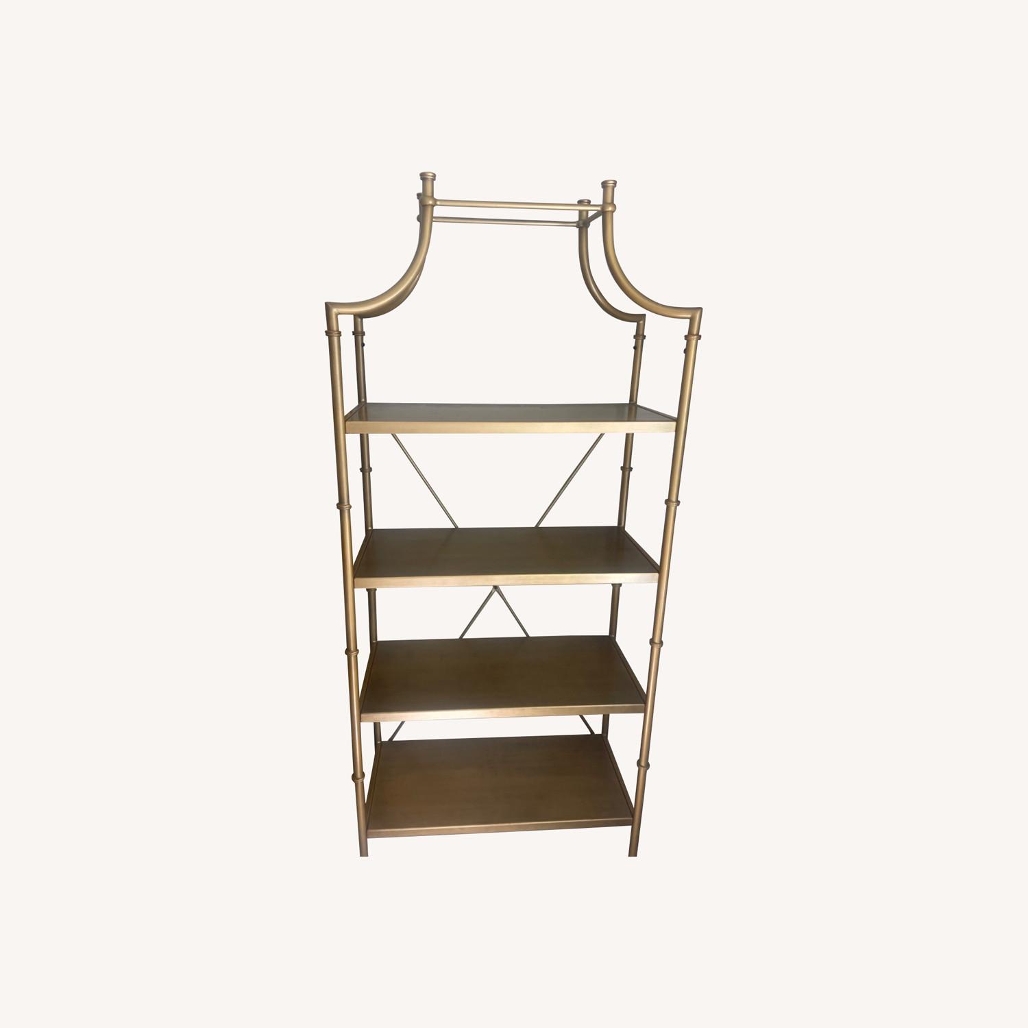 Seller's Notes:Pottery Barn Maison Bookshelf 3 Green-guard gold certified bookshelves that add style to any space and that take take cures from Hollywood Regency design. They are made of iron and metal and they are extremely sturdy, they store textbooks, keepsakes, crystals, framed photos, storage boxes and more. They are also very sturdy with built in levelers that make them stable on uneven surfaces and that prevent tip over. I used them to store my many textbooks in my last 2 years of graduate studies.