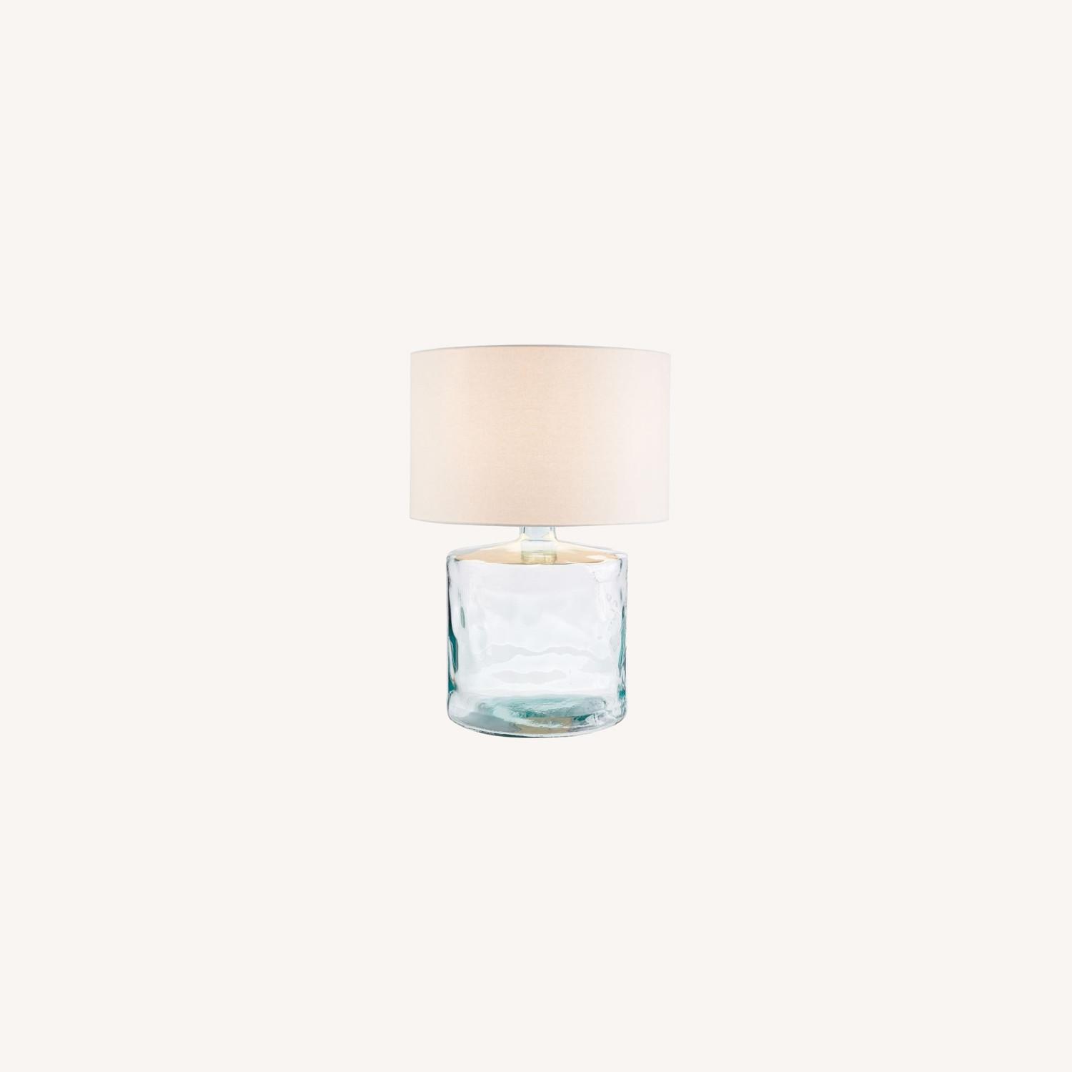 Seller's Notes:MALLORCA RECYCLED GLASS PORTABLESLARGE TABLEPEWTERRECYCLED GLASS
