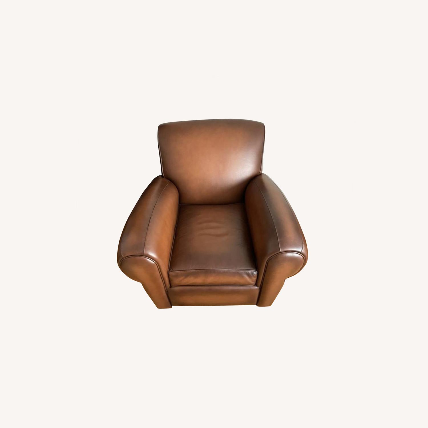 Seller's Notes:Practically brand new Pottery Barn Manhattan Leather Chair in Burnished Saddle. Barely used, in flawless condition. Also, placed in a shaded spot, so no direct sunlight to fade or dry the leather.
