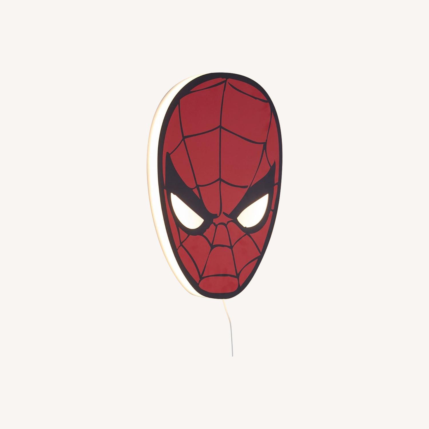 Seller's Notes:Add crime-fighting charm to their walls with our Spider-Man decor! Featuring a silkscreen print of the amazing web-slinger’s mask, this lightweight piece glows with LED lighting to help your kiddo feel safe in the dark. DETAILS THAT MATTER Hand crafted of MDF, acrylic and LED in China. This product celebrates and preserves artisan handcraft traditions around the world. Features a backing with 2 d-ring hangers. Features wall anchors and screws. On/off switch located on clear cord. KEY PRODUCT POINTS Pottery Barn Kids exclusive. LED bulbs are included and cannot be replaced. For indoor use only. UL-listed for transformer.
