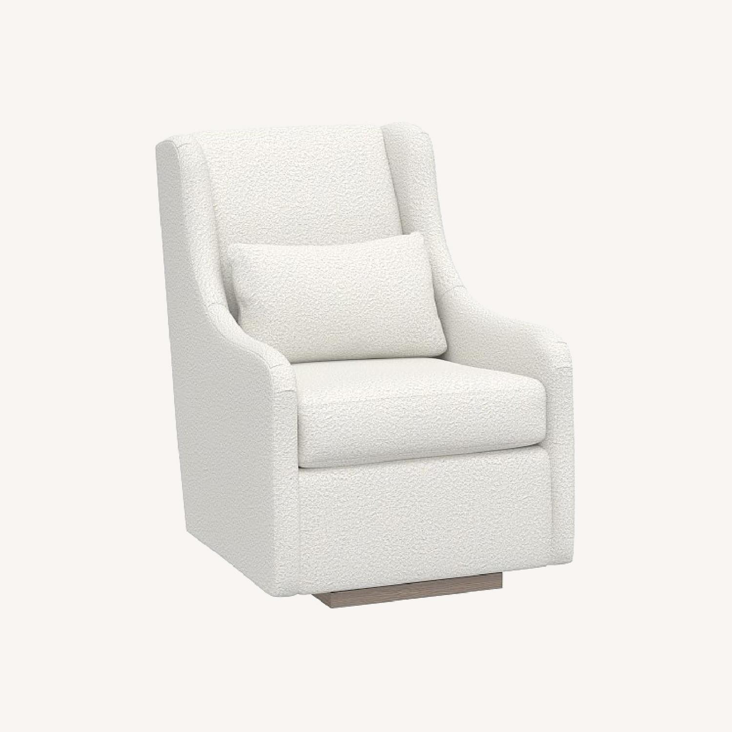 Seller's Notes:Merced Stationary Glider Performance Brushed Boucle Ivory With its clean lines and sides that slope into curved arms, our Merced Glider blends timeless and modern design elements. Extra-thick cushioning and a sturdy hardwood frame combine welcoming comfort with strength and longevity. This piece is GREENGUARD Gold Certified and meets strict chemical emissions limits to contribute to healthier indoor air. HOW IT IS CONSTRUCTED Expertly crafted from polywood and solid hardwood. Polyester-wrapped flame-retardant-free cushions for a firmer feel. No-sag sinuous springs provide cushion support. Base finished in driftwood. GREENGUARD Gold Certified to contribute to healthier indoor air, keeping you and your family safer. DETAILS THAT MATTER Chair and ottoman both glide. Polywood is plastic lumber made from recycled materials, such as milk and detergent bottles. KEY PRODUCT POINTS All Pottery Barn Kids juvenile products are tested at 3rd party CPSC accredited labs to meet or exceed all industry voluntarily and regulatory safety requirements. This collection is available upholstered.