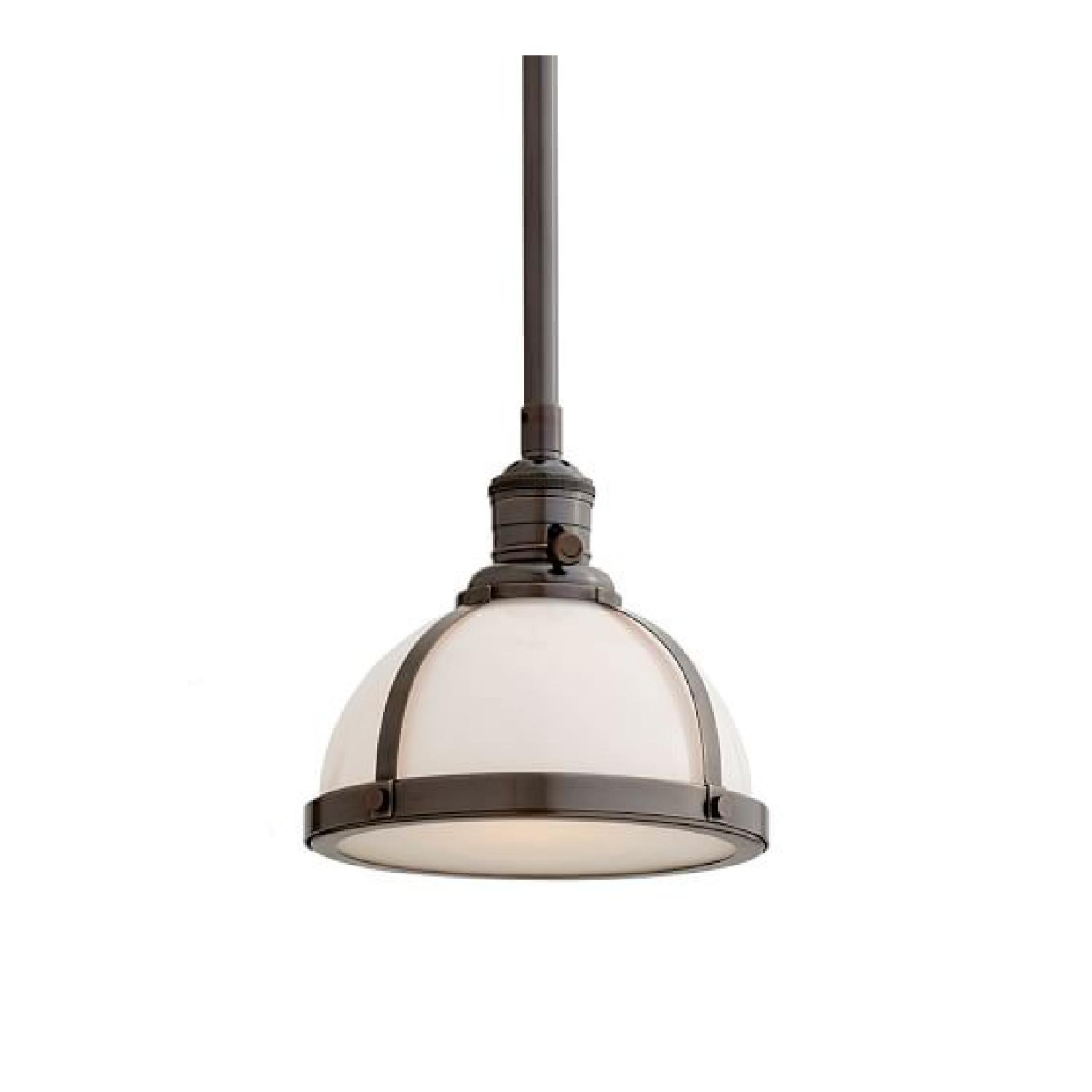 Seller's Notes:Pottery Barn sent me the wrong item, and I waited too long to return! :( PB Classic Industrial Rod Pendant in Milk Glass, size small. Perfect, new-in-box condition, includes everything that would be included if purchased new from Pottery Barn, including assembly instructions. Rod can be adjusted to a minimum hanging height of 12" and and maximum of 60".