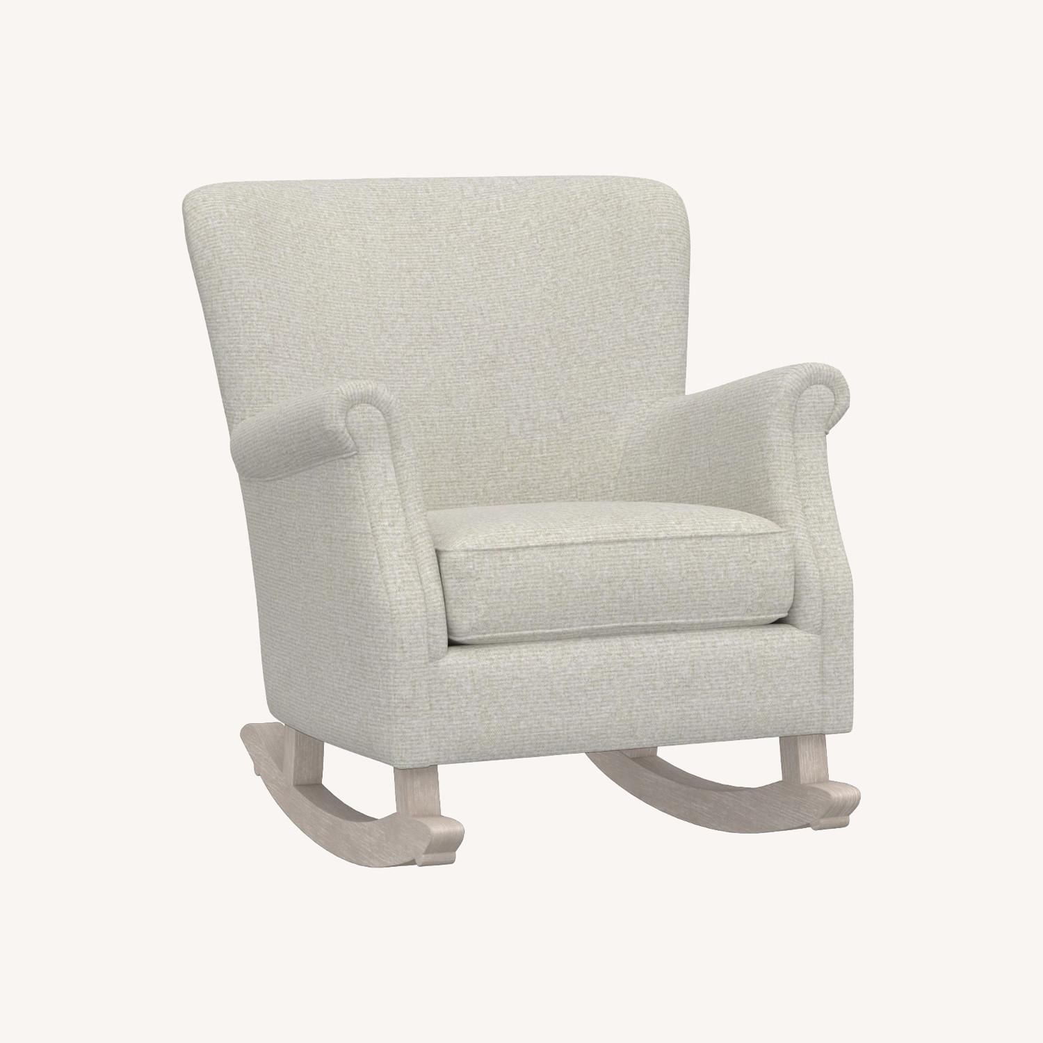 Seller's Notes:The Minna Small Spaces Rocking Chair is a chic-meets-comfy design that boasts a winged back and smaller armrests to offer plenty of shoulder and elbow space. Gently rolled arms and the hand-applied, multi-step Driftwood finish on the rocker rails and ottoman legs provide a tailored-meets-natural look. It’s carefully crafted with a solid hardwood frame and hardwood runners so it's sturdy and safe. HOW IT IS CONSTRUCTED Rocker and ottoman are expertly crafted with solid hardwood frame. Wood is kiln-dried to prevent warping or bowing. Thick polyester padding provides depth and comfort. Rocker rails and ottoman legs are made of solid rubberwood. Finish on rocker rails and ottoman legs are hand-applied in multi-step process in Brushed Fog. GREENGUARD Gold Certified to contribute to healthier indoor air, keeping you and your family safer. DETAILS THAT MATTER Choose from multiple fabric choices to make the rocker and ottoman unique to you. Rocker rails are fixed and cannot be removed or replaced. Ottoman legs are trapezoid shaped. KEY PRODUCT POINTS Pottery Barn Kids exclusive. All Pottery Barn Kids juvenile products are tested at 3rd party CPSC accredited labs to meet or exceed all industry voluntarily and regulatory safety requirements.