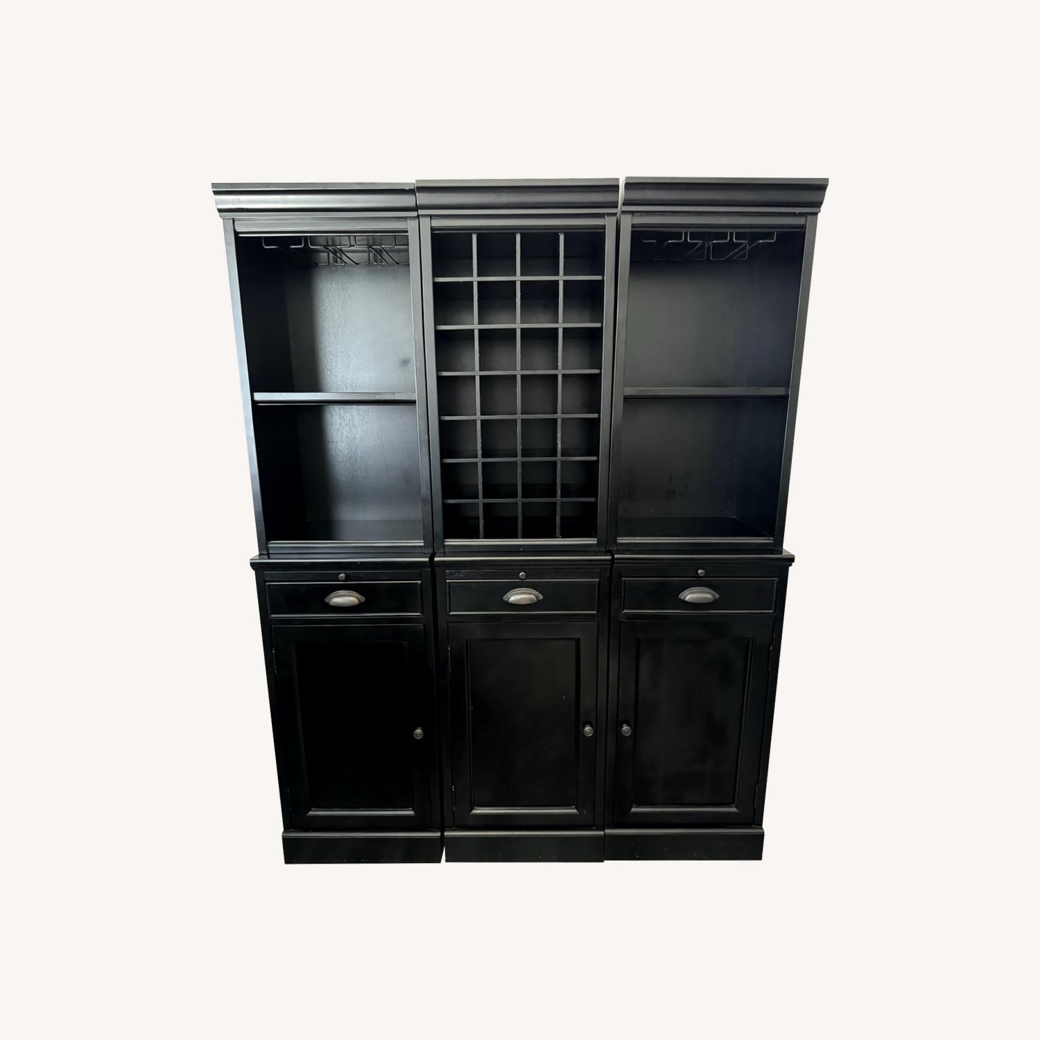Seller's Notes:-Beautiful and timeless piece. -This is my favorite piece of furniture, it doesn't work in my new home. -6 modular pieces that attach to each other. -Lower storage cabinets have an adjustable height shelf in each -Upper pieces have a 28 bottle wine grid and 2 open cabinets with stemware rails that hold 2-3 glasses/rail (6-9 glasses per cabinet) -3 pull out shelves to hold glasses as you pour -3 drawers and shelves to hold accessories/linens or a glass while you pour your favorite wine -MSRP $3000