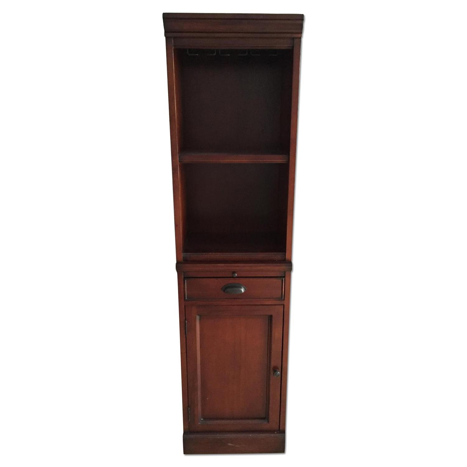 Seller's Notes:Pottery Barn Modular Bar with Cabinet Tower We love this piece, we just moved and don't have room for it. Sad to let it go. In great condition. A stylish alternative to built-in cabinetry, the Modular Bar Tower organizes, stores and displays entertaining essentials. Open Hutch: 18'' wide x 14'' deep x 34'' high Cabinet Base: 18'' wide x 13.5'' deep x 36'' high Crafted of mahogany, hardwood and mahogany veneers. Includes one Hutch and one Cabinet Base. Hutch has three stemware racks that can hold a total of six wine glasses. http://www.potterybarn.com/m/products/modular-bar-cabinet-tower/?pkey=cbars-furniture&isx=0.0.2413