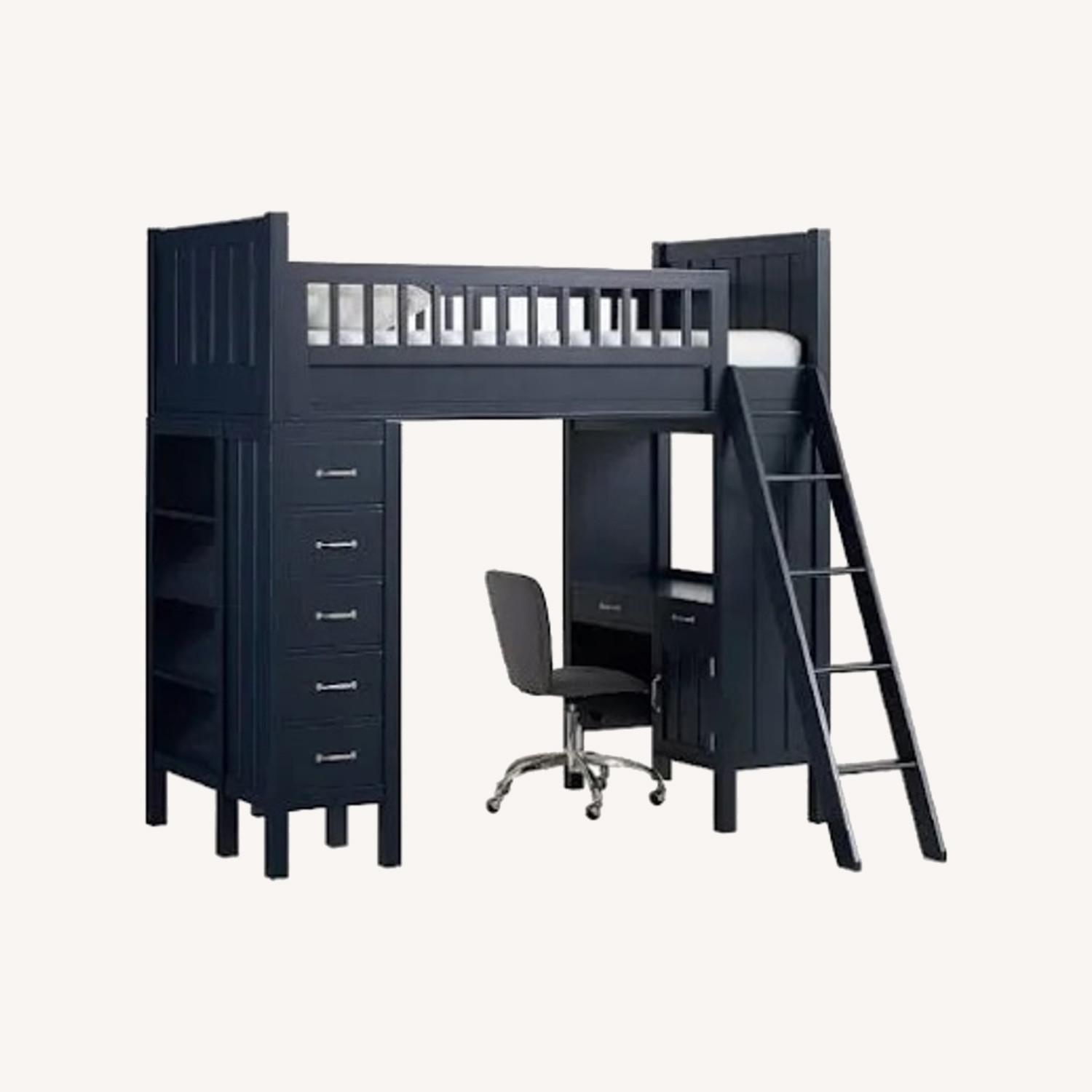 Seller's Notes:We bought this bed less than a year ago but my son doesn’t like to sleep in a bunk bed. We just ordered another bed and will need to sell this one. Like new, rarely been slept in! A beautiful navy blue wood with shelves and desk built in.