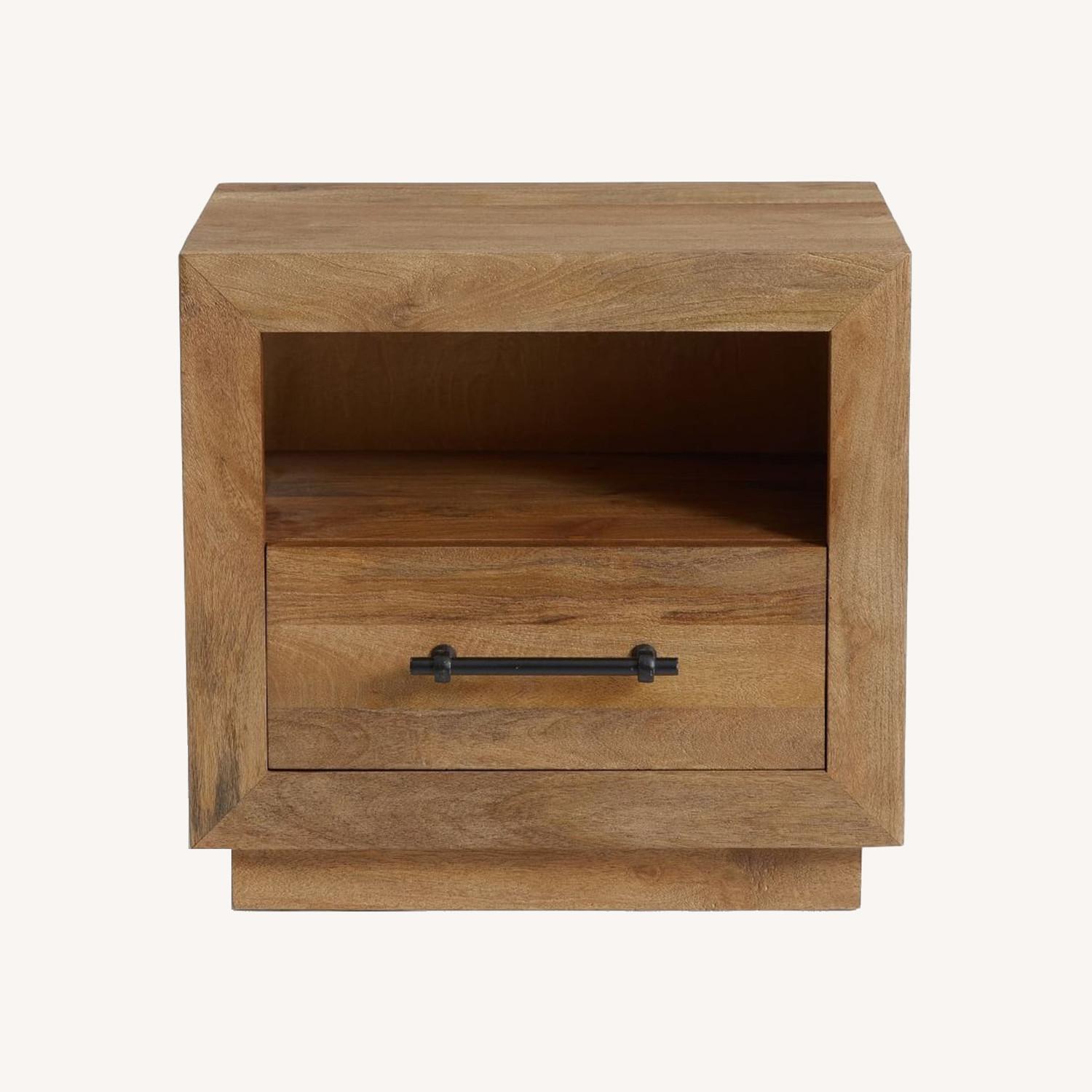 Seller's Notes:Crafted of mango wood and birch MDF. Crafted of mango wood, a sustainably sourced and ultra-durable hardwood. MDF is an engineered wood that lends exceptional strength and ensures the dresser’s structural integrity over time. Nightstand features 1 drawer and 1 shelf for additional storage. Drawers feature french cut dovetail joinery and hafele Metal Ball Bearing drawer glides, which ensure smooth motion. Black-finished iron drawer pulls. Adjustable levelers provide stability on uneven floors.