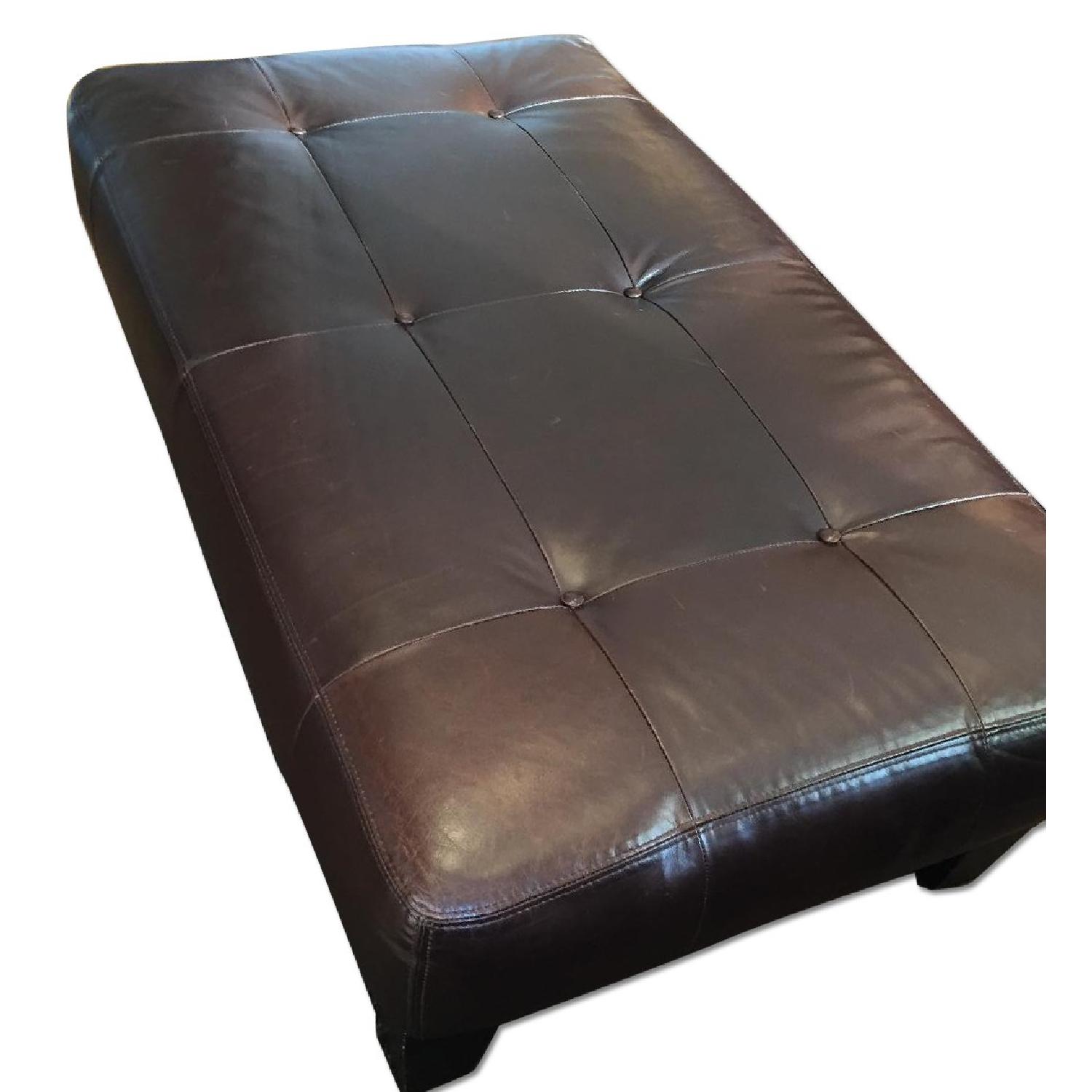 Seller's Notes:We are redecorating and this piece no longer fits. We have loved it as a coffee table/extra seating. The leather is a little broken in but still beautiful. The legs have typical minor little scuffs (from vacuum hitting it) but otherwise this piece is in great shape and very handsome.