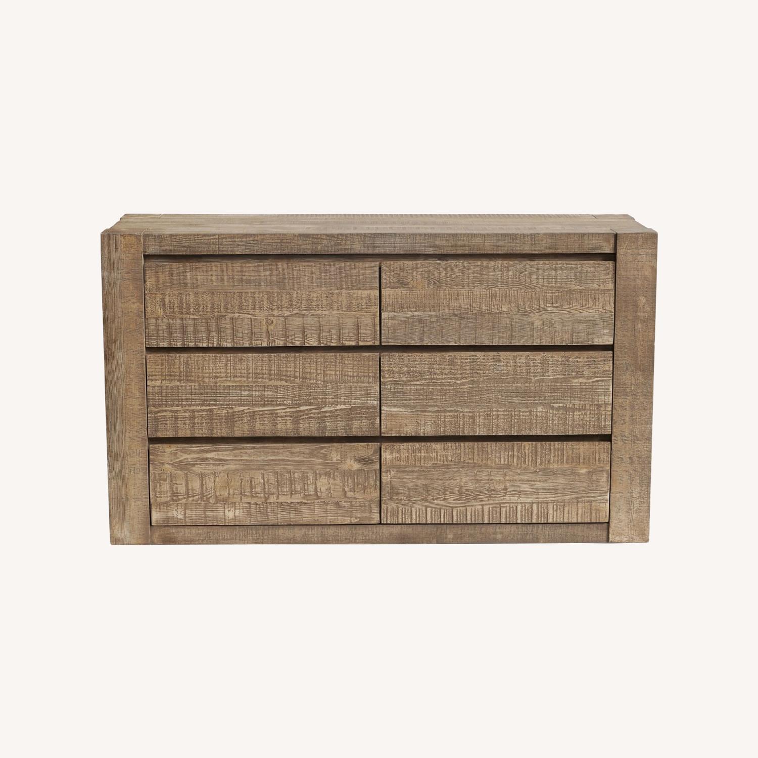 Seller's Notes:Made with reclaimed wood from pine. Each piece tells stories from its previous life, including scratches, color variations, stains, repair patches and natural imperfections. Backed with MDF. MDF is an engineered wood that lends exceptional strength and ensures the product’s structural integrity over time. Kiln-dried wood helps prevent warping, splitting, cracking and developing mildew. Finished on all sides by hand in oil-based Sierra. Dresser features 6 drawers arranged side-by-side. Finger grooves across drawer front allows for easy opening. Drawers feature metal glides, which ensure smooth motion. Sturdy half-moon safety stops keep drawers securely in place. Adjustable levelers provide stability on uneven surfaces.