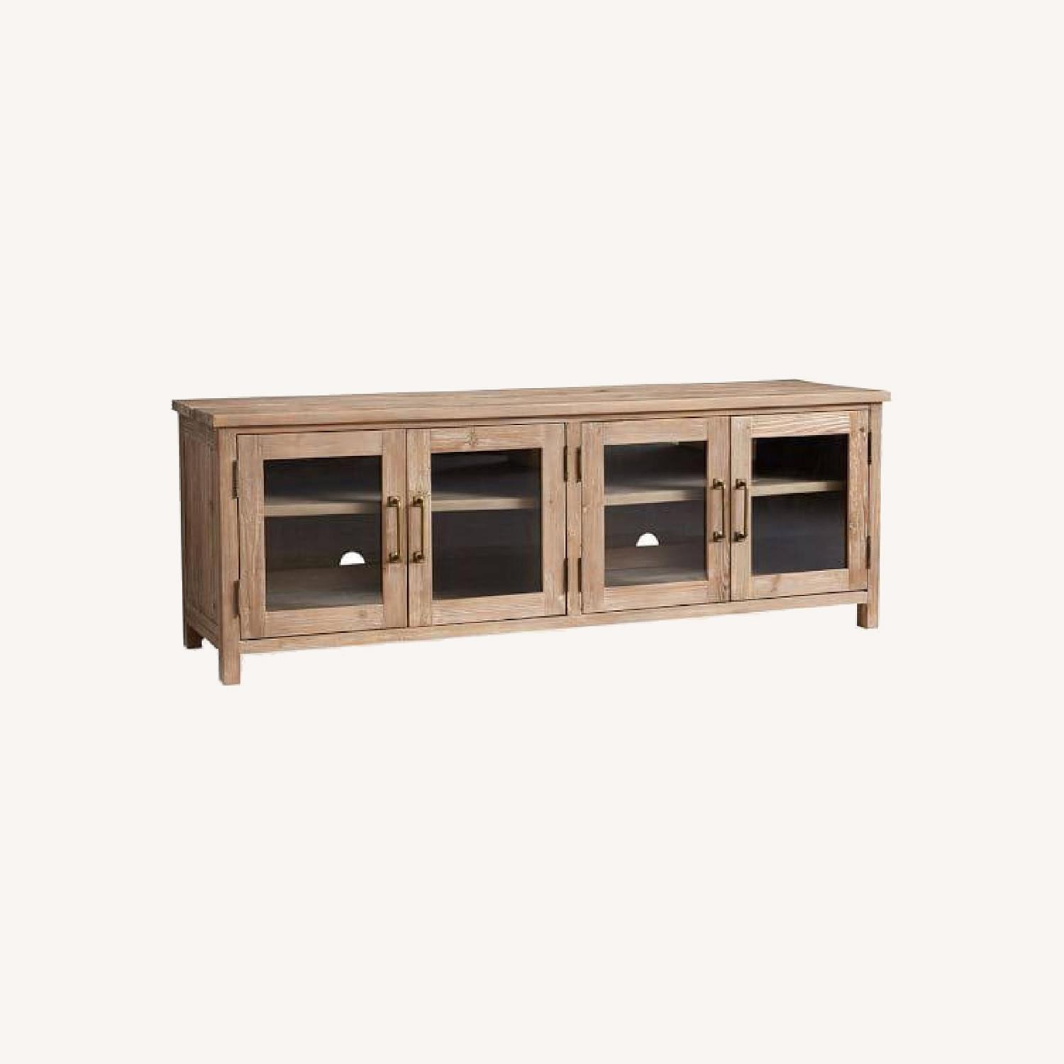Seller's Notes:This piece was purchased 2 years ago for $1,299 (Before Tax and Shipping). This console is in brand new condition, no damage, wear or tear - just selling it because it doesn't fit my new space as well as it used to. Four glass and wood doors open up to large storage area underneath for plenty of storage.
