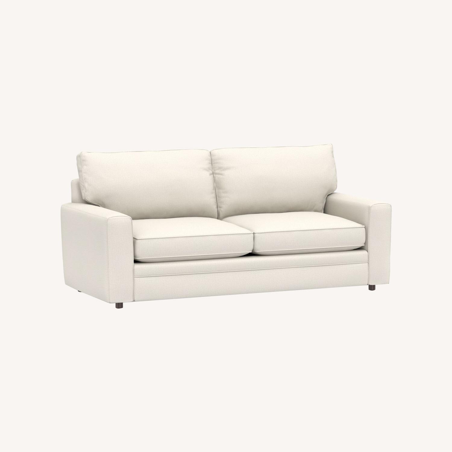 Seller's Notes:Square arm. Removable legs are finished in Espresso. For a lighter finish, shop our Pearce Collection Seadrift Legs. Loose cushions; available in multi-seat or bench cushion. Seat cushions are down-blend-wrapped for a softer feel. Back cushions are polyester-blend which provides a firmer feel. High-performance, contract-grade cushions feature high-density foam for greater durability and longevity. They will maintain their shape with repeated, heavy use over time, while offering a firm and supportive sit. Expertly crafted engineered wood frame with mortise-and-tenon joinery, which provides exceptional structural integrity. No-sag steel sinuous springs provide cushion support. Adjustable levelers provide stability on uneven floors.