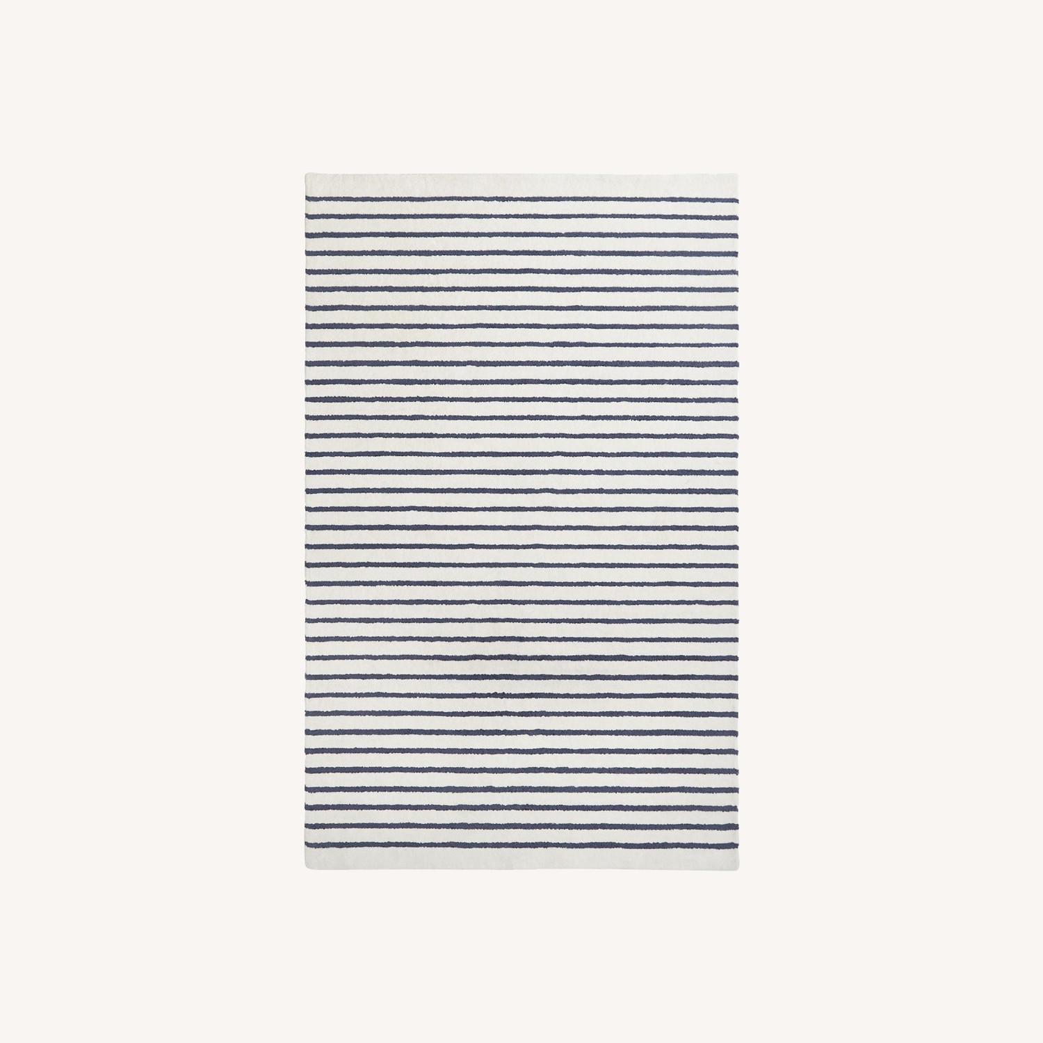 Seller's Notes:Lay the foundation for timeless style with our performance rug. Ideal for high-traffic areas, this striped piece is handtufted by skilled artisans using durable PET fabric crafted from recycled water bottles, making it an eco-friendly choice for the sustainable home. DETAILS THAT MATTER Handtufted of 100% PET polyester in India. This product celebrates and preserves artisan handcraft traditions around the world. PET rugs are kid-friendly and can be cleaned with soap and sponge. PET polyester uses less energy to produce, keeps plastics out of landfills and is resistant to stains, fading and mildew. Rug is yarn-dyed – Fibers are treated individually with environmentally safe dyes before weaving to offer vibrant, lasting colors. 5'x8' rug is sourced from 190 bottles of 1.5 liters each. 7'x10' rug is sourced from 190 bottles of 1.5 liters each. A mixture of cut and looped pile adds texture and dimension. Self-bound for enduring quality. Backing is made of 100% cotton fabric with odorless synthetic latex adhesive, which makes it non-slip for added safety. The synthetic latex provides a more durable and flexible backing that reduces odor and extends the rug’s life. It does not present a risk to those with latex allergies, nor does it dry out or break down over time. KEY PRODUCT POINTS Pottery Barn Kids exclusive. Rug Pad recommended (sold separately); combine or cut pads to fit your order. For more information regarding construction and care, view our Rugs Glossary.