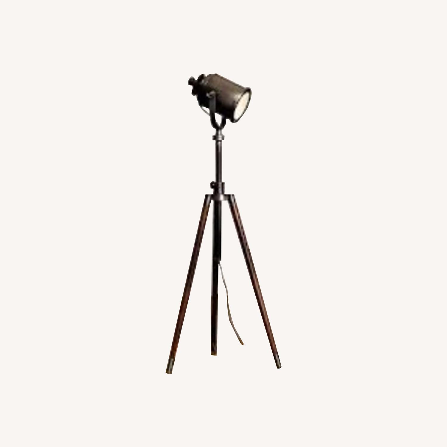 Seller's Notes:This is a Pottery Barn Photographer's Adjustable Tripod Floor Lamp. It is in perfect condition meaning with no visible scratches and 100% functional. Many years left to live. Inspired by the golden age of cinema, when studio lights were designed to create a quality of light that simultaneously softened and highlighted actors’ expressions. Cast of metal with an espresso-stained hardwood base. Frosted glass diffuser. UL-listed. Imported. DIMENSIONS Overall: 23" wide x 20" deep x 52" high; extends to 73" high Bulb (1): 15 watt LED (included); also accommodates 60 watt, incandescent bulb type A (not included) Bulb (1): 75 watt, incandescent bulb type R, recommended CARE AND MAINTENANCE Wipe with a soft, dry cloth only. Avoid the use of harsh chemicals or abrasives as they may damage the finish. Do not exceed specified wattage.