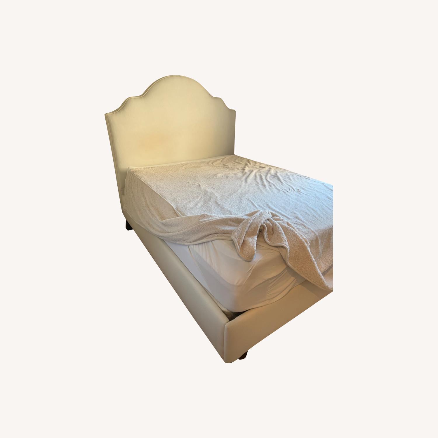 Seller's Notes:Great upholstery on a queen size pottery barn bed. There is minor discoloration to the natural color of the fabric.