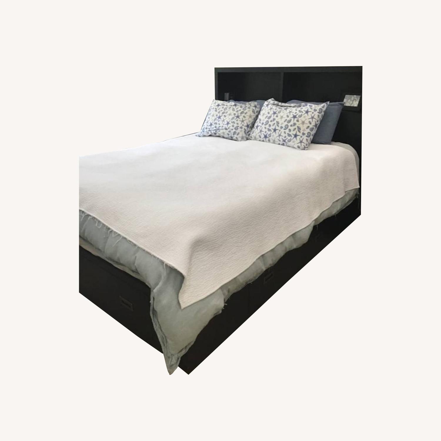 Seller's Notes:Pottery Barn Model: Reynolds Suite storage bed Black frame 62”x 90” with drawers. Good condition