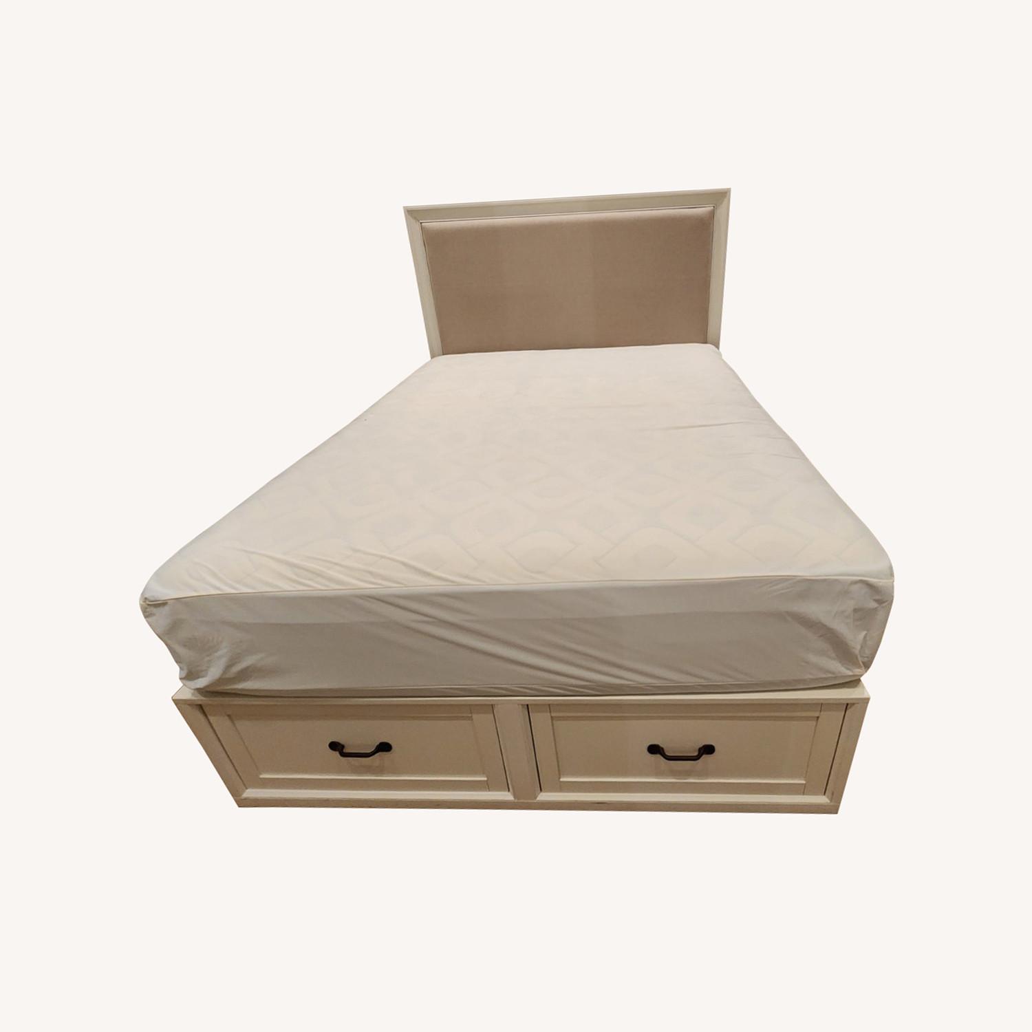 Seller's Notes:My wife and I just moved and got a new bed. We'd love to find our Pottery Barn Stratton Storage Platform Bed with Drawers & Montgomery Headboard a new home. Bed is in excellent condition. Pics are with a queen pillowtop mattress (with can be included the storage bed at no additional cost).