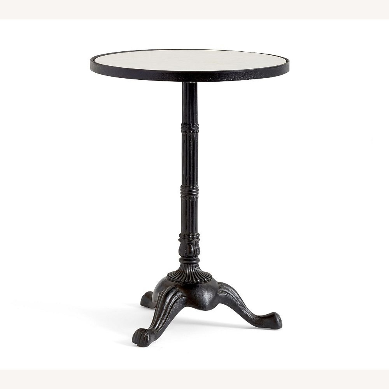 Table is cast of aluminum with a white Marble top.
