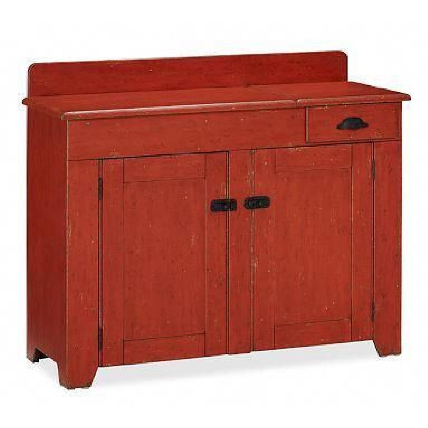 Pottery Barn Red Credenza Cabinet w/ Open Hinge Top
