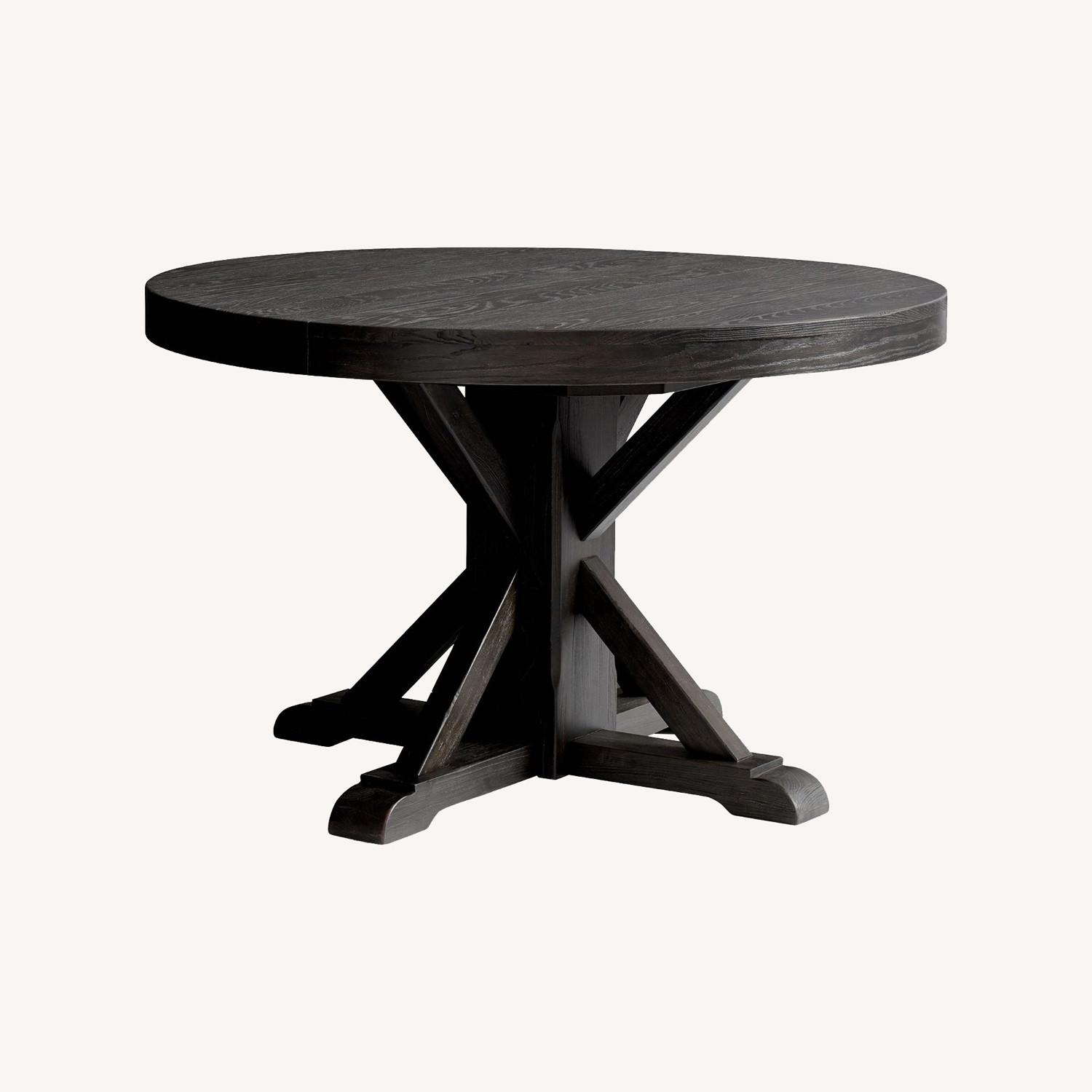 Seller's Notes:Extends from 48" Round to 72" Oval CONSTRUCTION -Expertly crafted of kiln-dried hardwood veneers. -Due to the nature of planked wood, the table may have small spaces between the panels. -Kiln-dried wood helps prevent warping, splitting, cracking and developing mildew. -The use of veneers results in high-quality furniture with flawless surfaces and consistent color tones. -Finished by hand using an exclusive technique that results in exceptional depth of color. -Pedestal base is constructed of 8 trusses that evoke industrial architecture. -Includes 1-24" drop-in leaf. -Adjustable levelers ensure stability on uneven surfaces. -Contract Grade: Thoughtfully designed and expertly engineered to meet rigorous testing standards and best practices from select ANSI/BIFMA testing protocols. CARE -To protect finish, do not apply abrasives or household cleaners, dust with soft dry cloth. -Always use coasters, pads cloth or felt to protect furniture surface. -Wipe up spills immediately. -Do not expose to direct sunlight or excessive temperatures. -Hardware may loosen over time, periodically check to make sure all connections are tight and retighten if necessary.