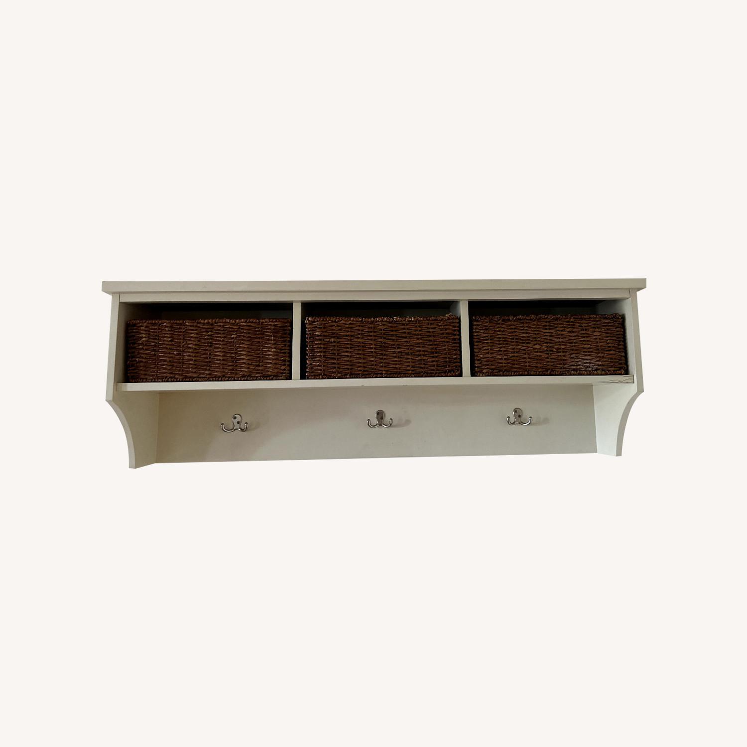 Seller's Notes:This entryway wall shelf will greet you warmly as you come home from a busy day. A system designed to bring order and organize to your home. Let the bench (sold separately) give you rest as you take a seat to sort mail, remove shoes or check texts after your commute. The shelf, along with wicker baskets as shown, provides storage for outerwear accessories, umbrellas or books!