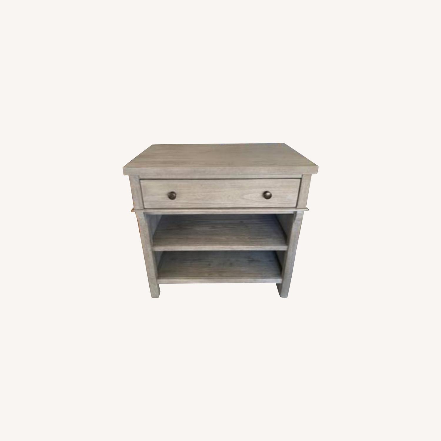 Seller's Notes:Used - like new, two side tables/ nightstands for sale.k Pottery Barn Toulouse 29” Nightstands. DIMENSIONS: 29" wide x 18" deep x 28" high Weight: 66.25 pounds Description from PB site: "Two shelves and a drawer offer plenty of storage in a slim silhouette. Features 1 drawer for storage. Masterfully crafted of kiln-dried Meranti solid wood and engineered wood with Sungkai veneers. Finished using a multi-step process that highlights the wood’s natural grain. Drawer features English dovetail construction; metal ball-bearing drawer glides; removable with plastic locks on sides (push upwards). The use of veneers results in high-quality furniture that has flawless surfaces and consistent color tones, and that will not be subject to cracking. Metal knobs and pulls. Imported." Link to website: https://www.potterybarn.com/products/toulouse-bedside-table/