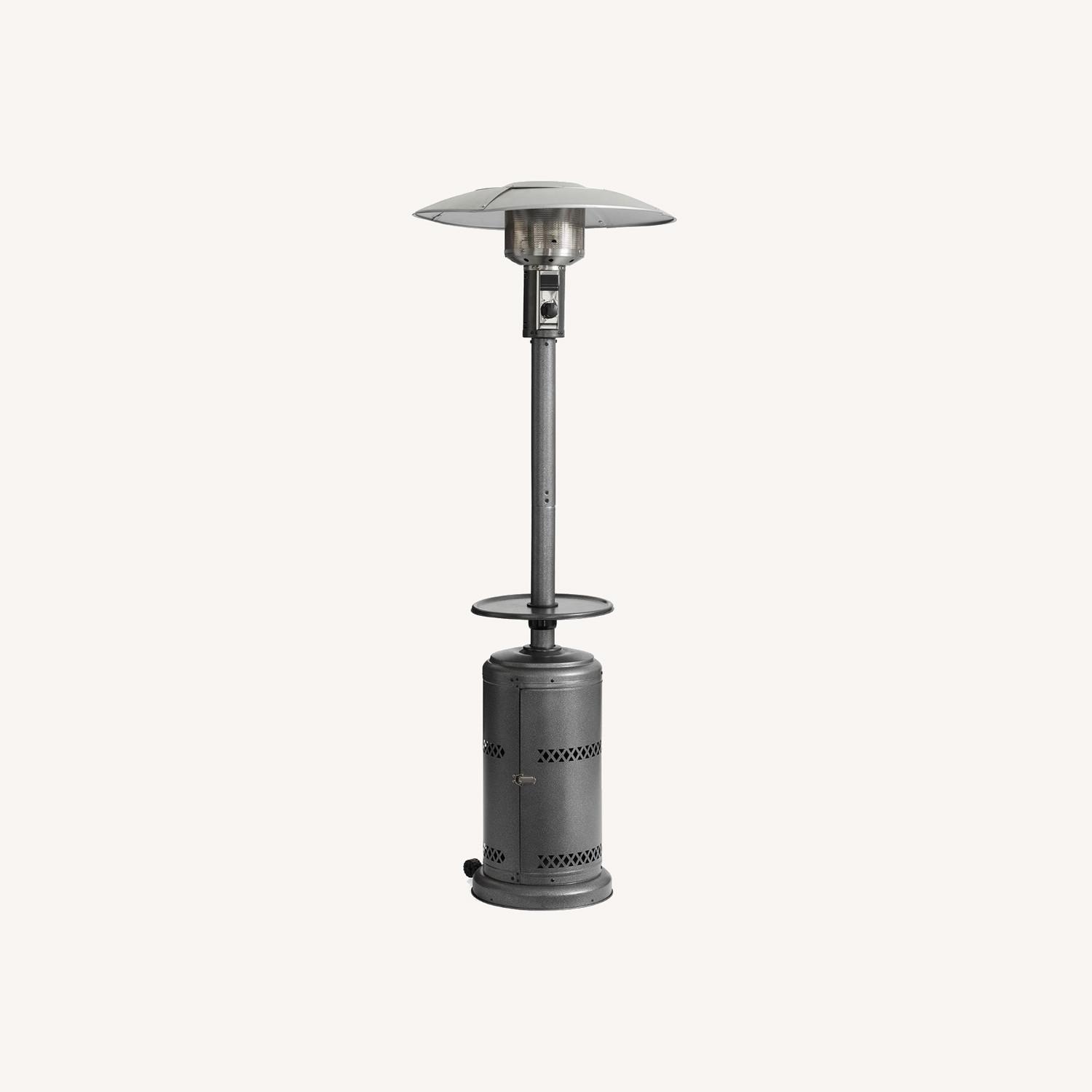 Seller's Notes:When the nip of cooler air settles in, keep the patio cozy with an outdoor heater. This one has an easy push and turn ignition and a choice of three finishes. It’s as much of a cool weather staple as a cable knit. Crafted from steel with an aluminum shade. Features a silver, bronze or black finish. Easy-to-turn-on "push & turn" ignition makes it simple to use. Wide heat range is perfect for patios and decks, heats up to 200 square feet. Caster wheels on the bottom for easy, smooth mobility. Phthalate and BPA free. Water and UV resistant. Propane powered (propane not included). 20 lbs. tank of gas lasts 10–12 hours on high.