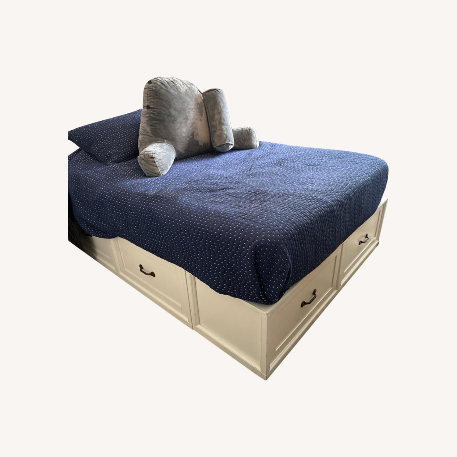 Seller's Notes:Well loved queen size bed frame with storage. Drawers hold a ton and are super helpful gaining storage in a small space. Moving overseas so divesting of some large and heavy things.