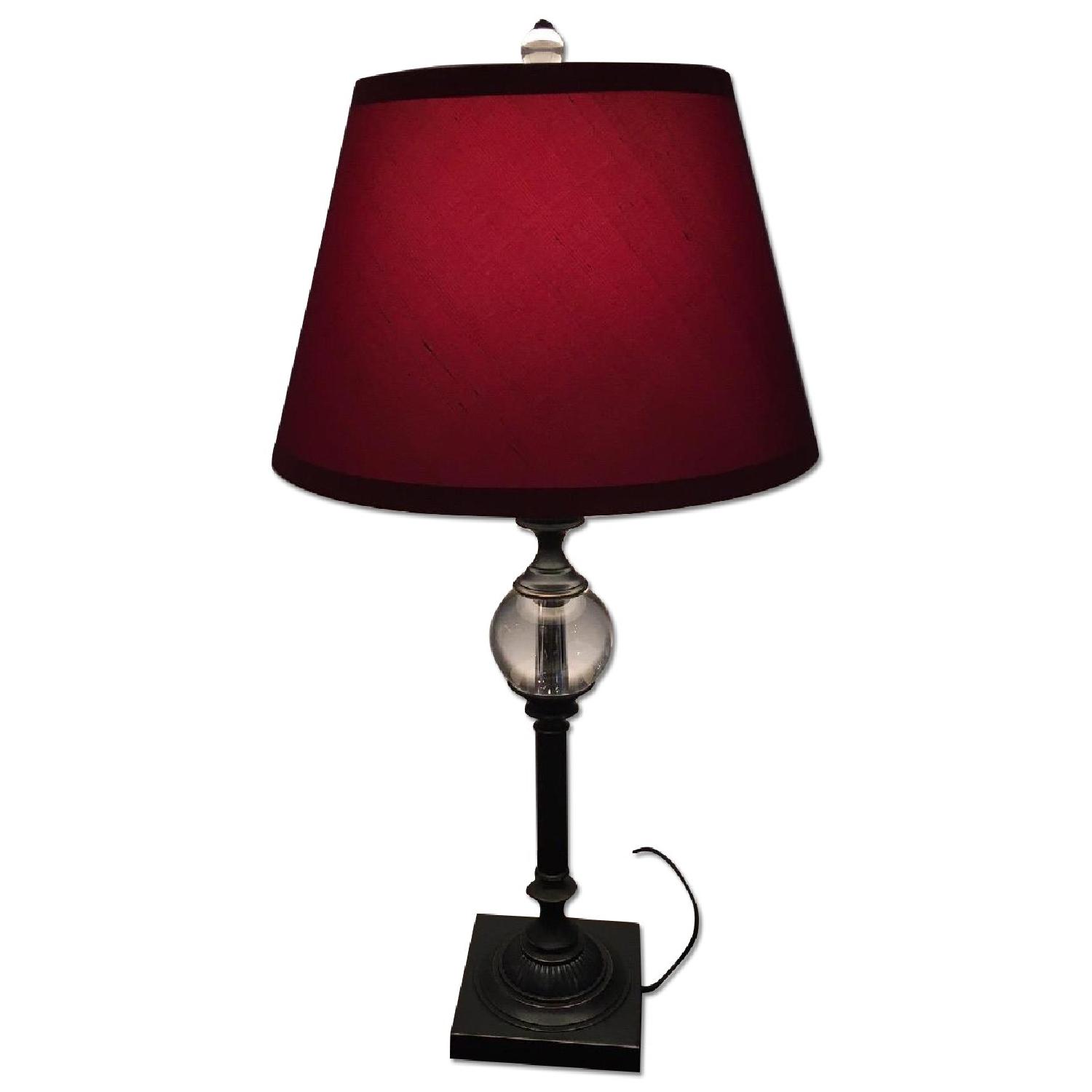 Seller's Notes:Accent lamps from Pottery Barn. Red shades and dark base/pole.