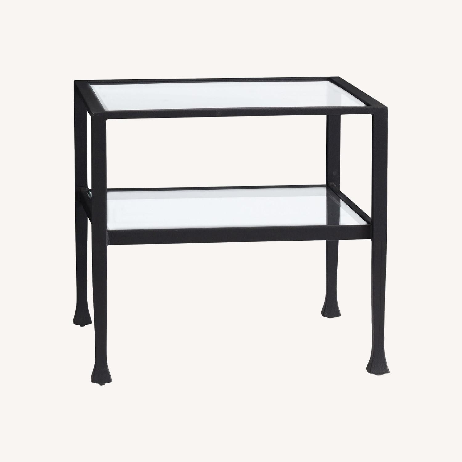 Seller's Notes:Base is crafted of iron with clear glass top and lower shelf. Base features a powder coat black finish. Adjustable levelers provide stability on uneven surfaces. Contract Grade: Thoughtfully designed and expertly engineered to meet rigorous testing standards and best practices from select ANSI/BIFMA testing protocols. Simple assembly required. Imported.