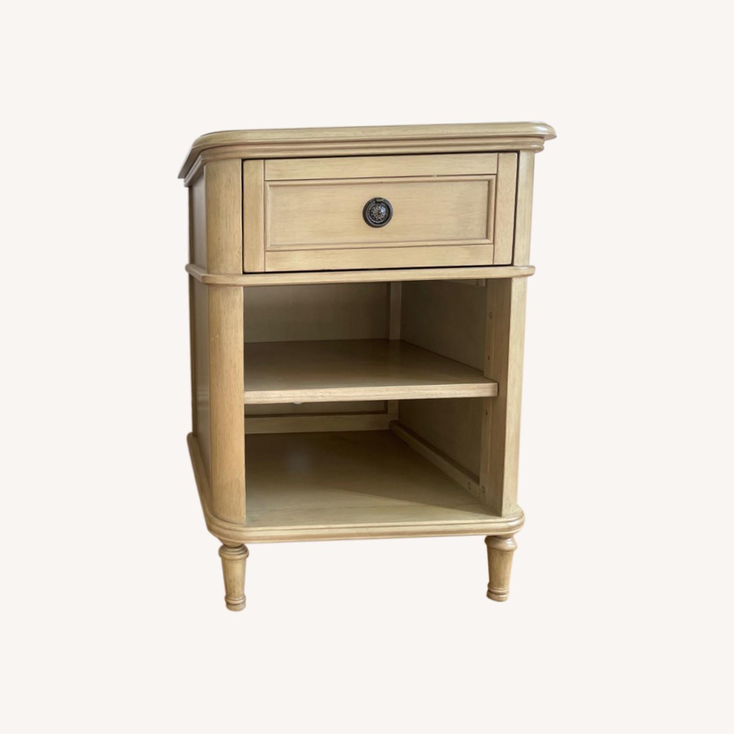 Seller's Notes:Beautiful gently used bedside tables for sale! This item is part of the Pottery Barn Teen Colette Collection, this sweet bedside table boasts classically designed detail and pretty, antique-bronze accents. The spacious drawer is perfect for stowing bedtime essentials, while built-in shelf space is ideal for books, magazines and picture frames. GREENGUARD Gold Certified to contribute to healthier indoor air, keeping you and your family safer. Expertly crafted of solid rubber wood, white birch veneers, plywood and MDF. Features one roomy drawer, two shelves and cord cut out in bottom shelf back. Hardware is finished in antique bronze. Middle shelf is height-adjustable to meet your storage needs. English Dovetail drawer has half moon stops to prevent it from accidentally falling out. Features elegant lathe-turned feet and recessed panel drawer with detailed molding.